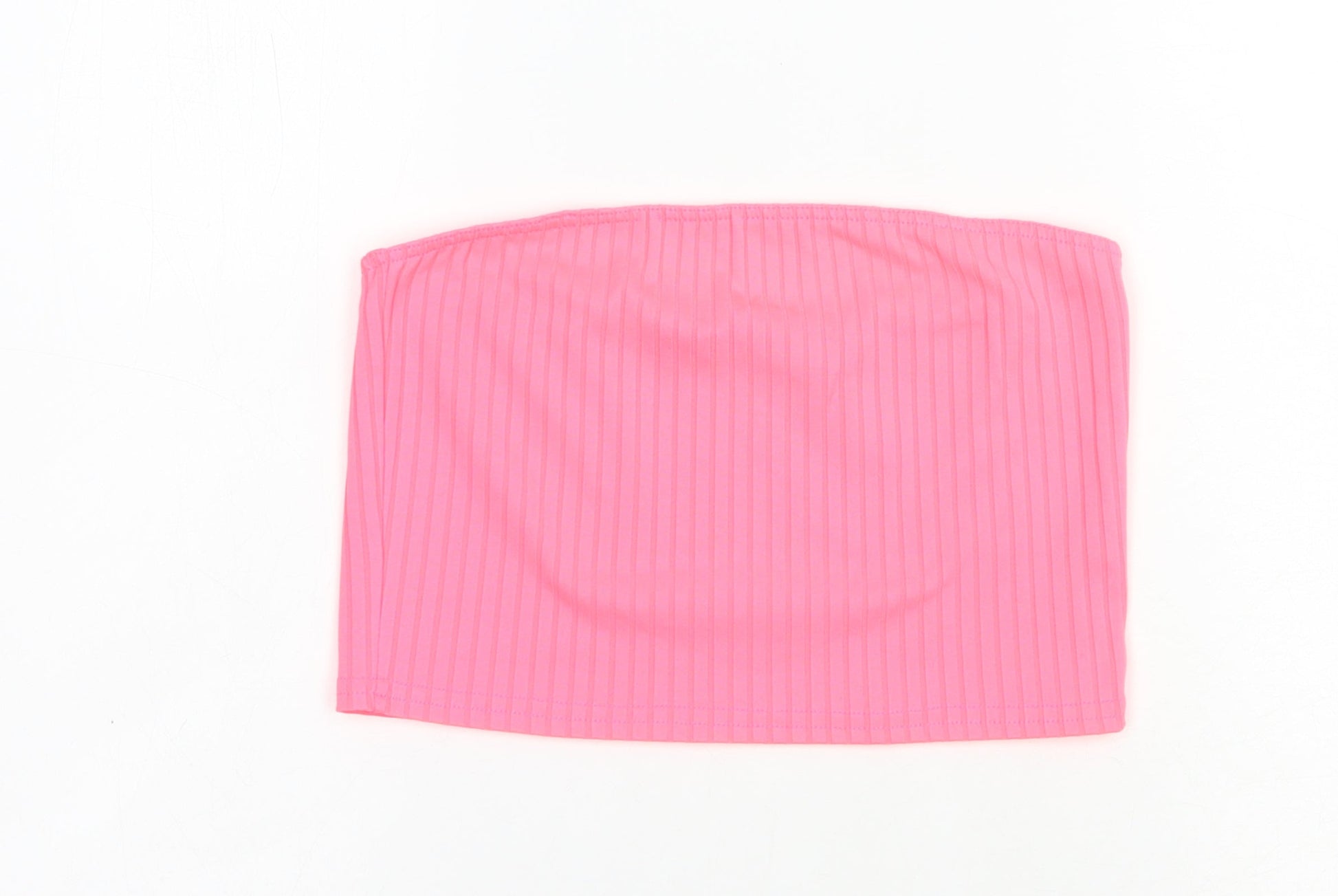 Boohoo Womens Pink Polyester Cropped Tank Size 10 Off the Shoulder - Boob Tube
