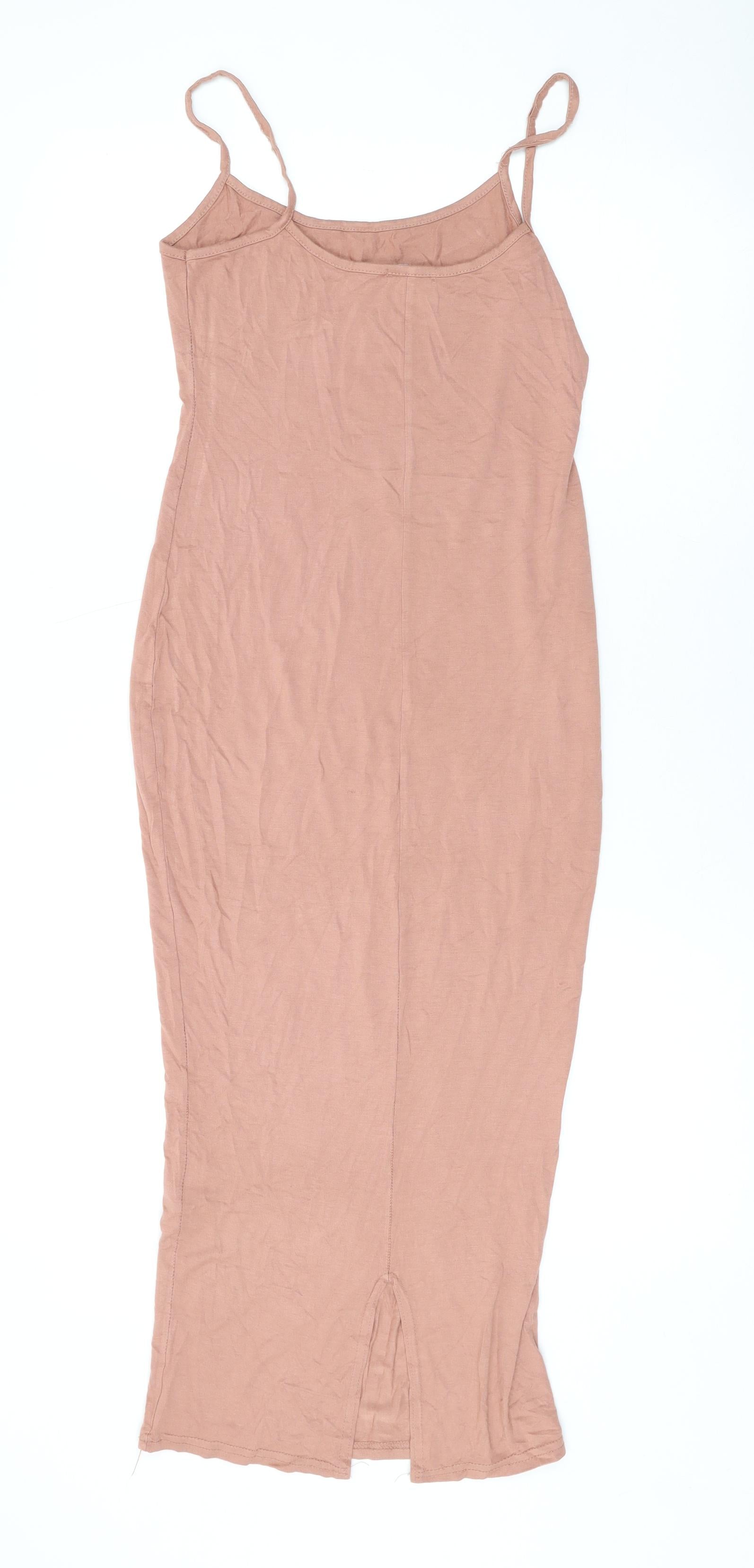 Boohoo Womens Pink Viscose Bodycon Size 8 Scoop Neck Pullover