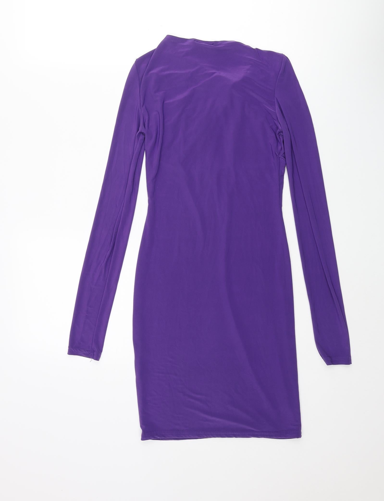 Boohoo Womens Purple Polyester Bodycon Size 8 Round Neck Pullover - Knot Detail