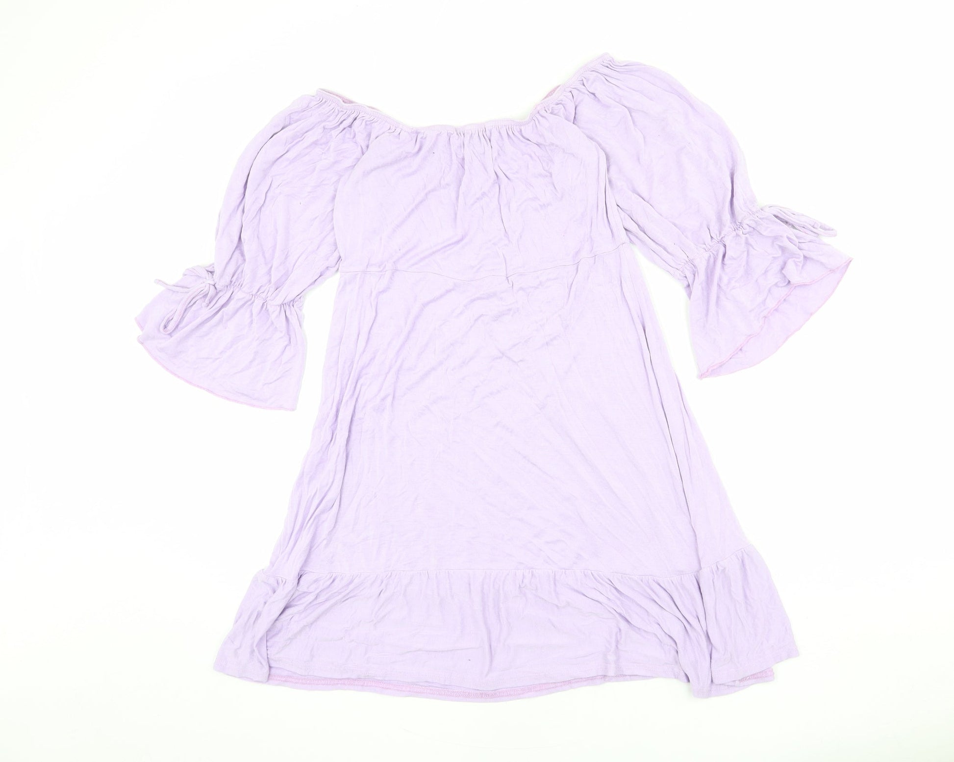 Boohoo Womens Purple Viscose Mini Size 14 Boat Neck Pullover