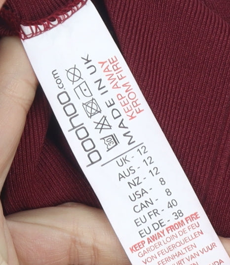 Boohoo Women's Red Bodycon Dress Size 12 Zip Detail