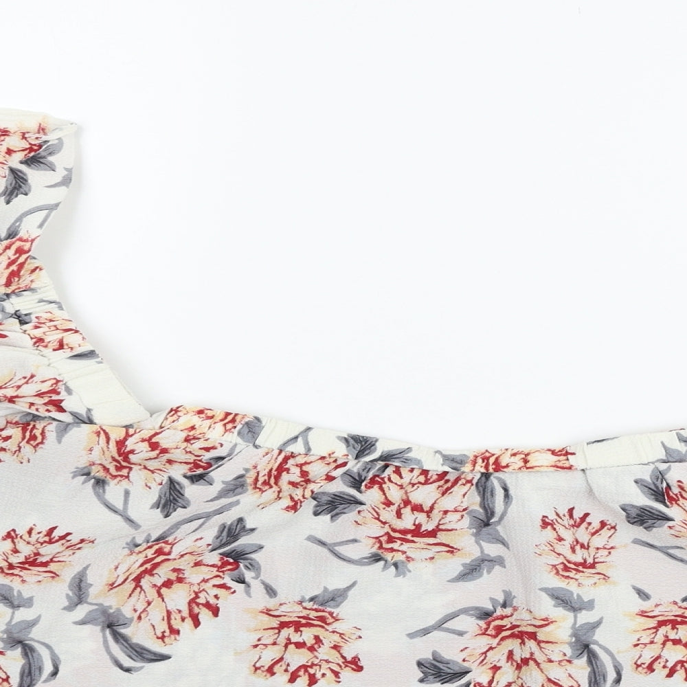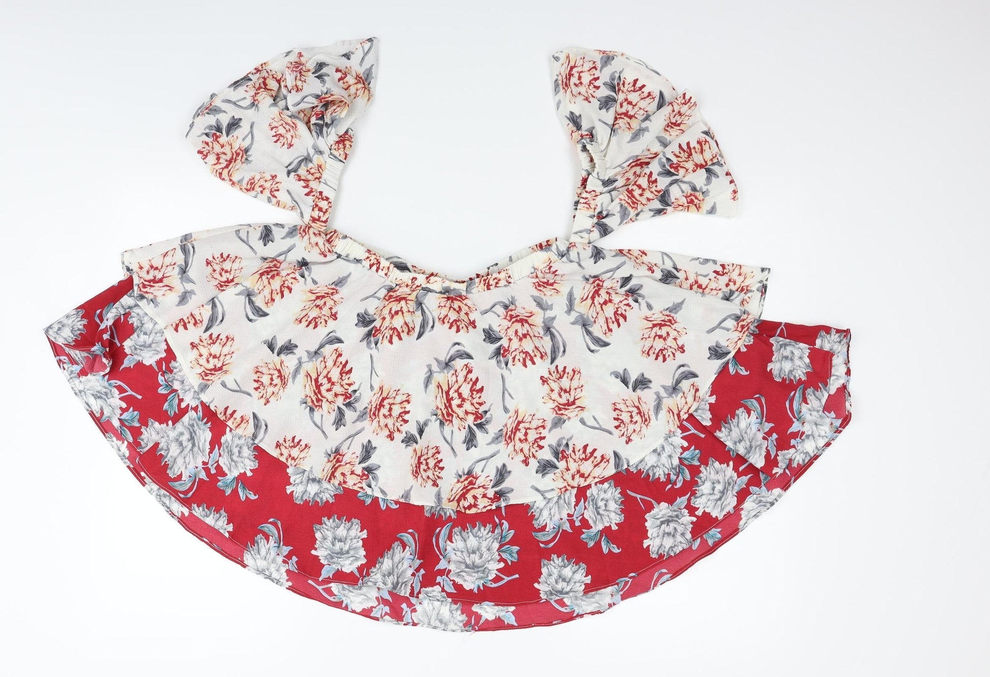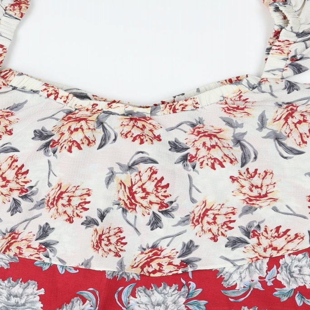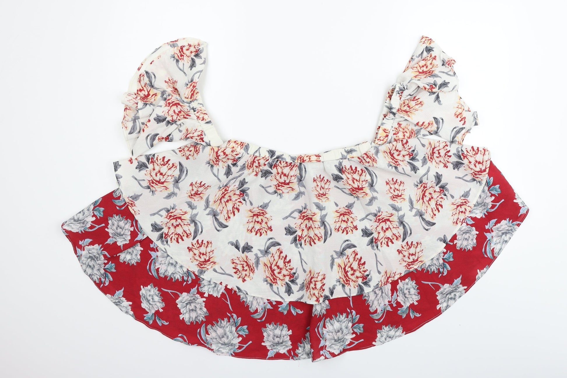 Boohoo Womens Red Geometric Basic Blouse Size 8