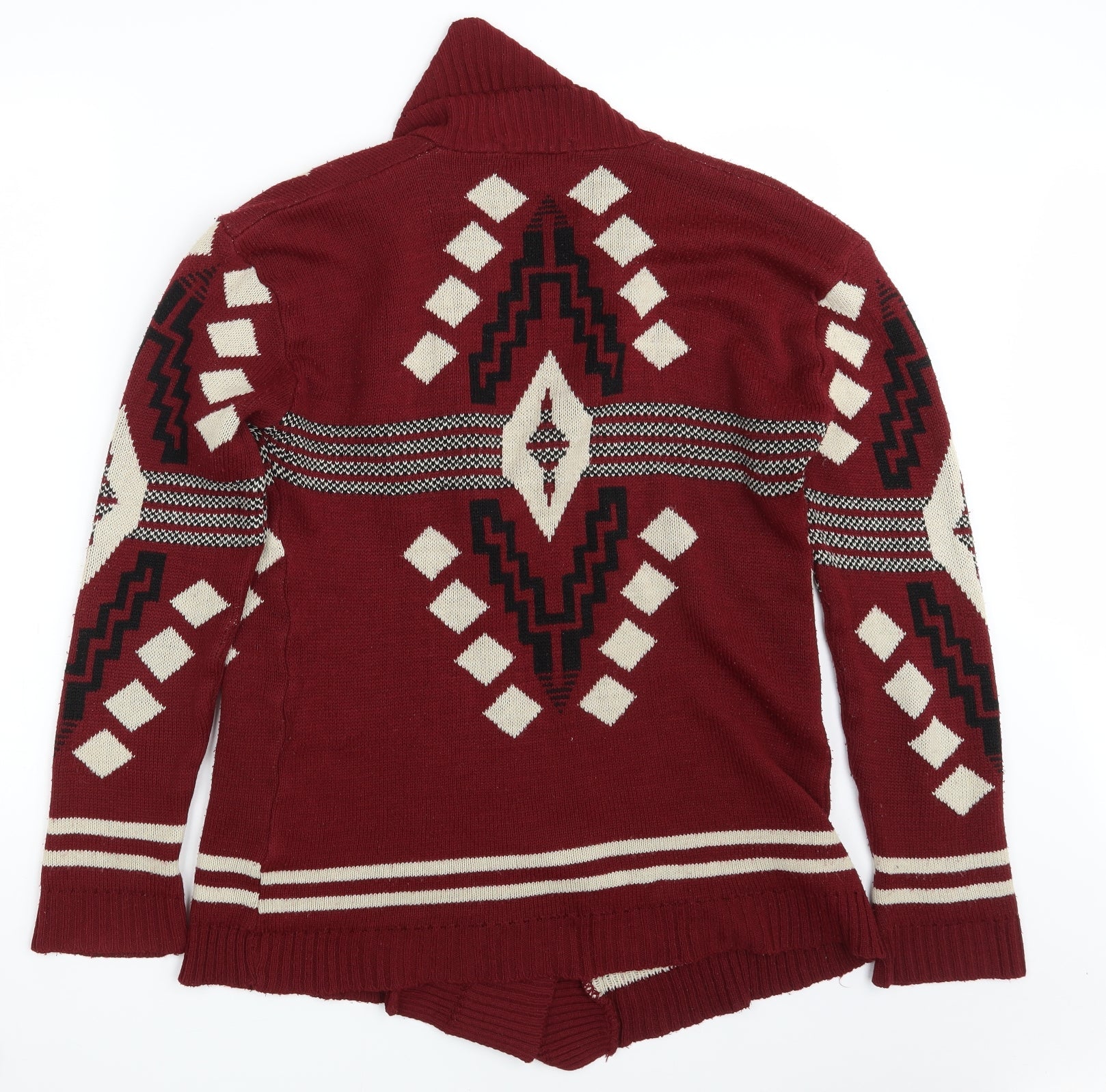 Boohoo Womens Red Geometric Knit Wrap Jumper Size M