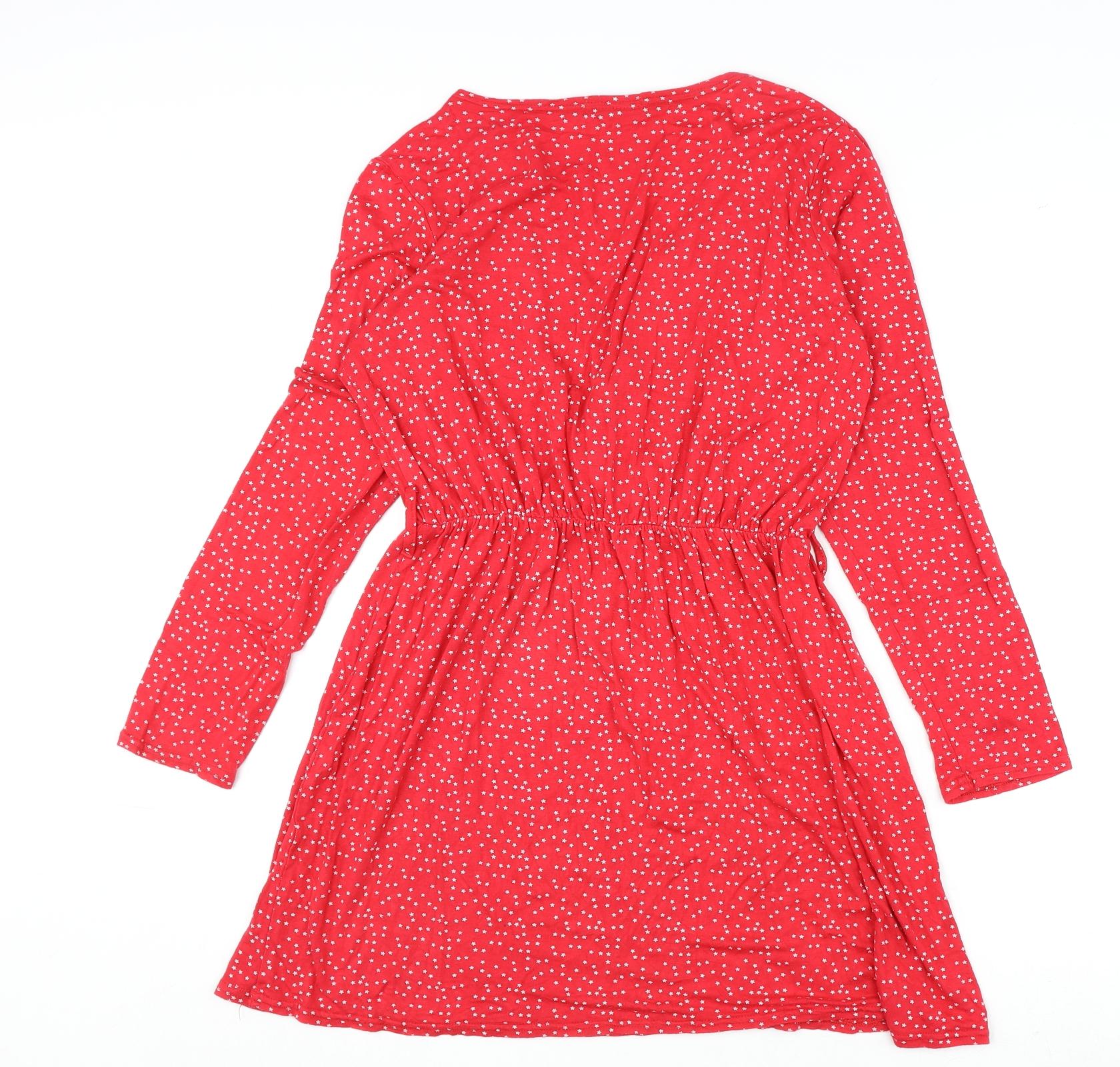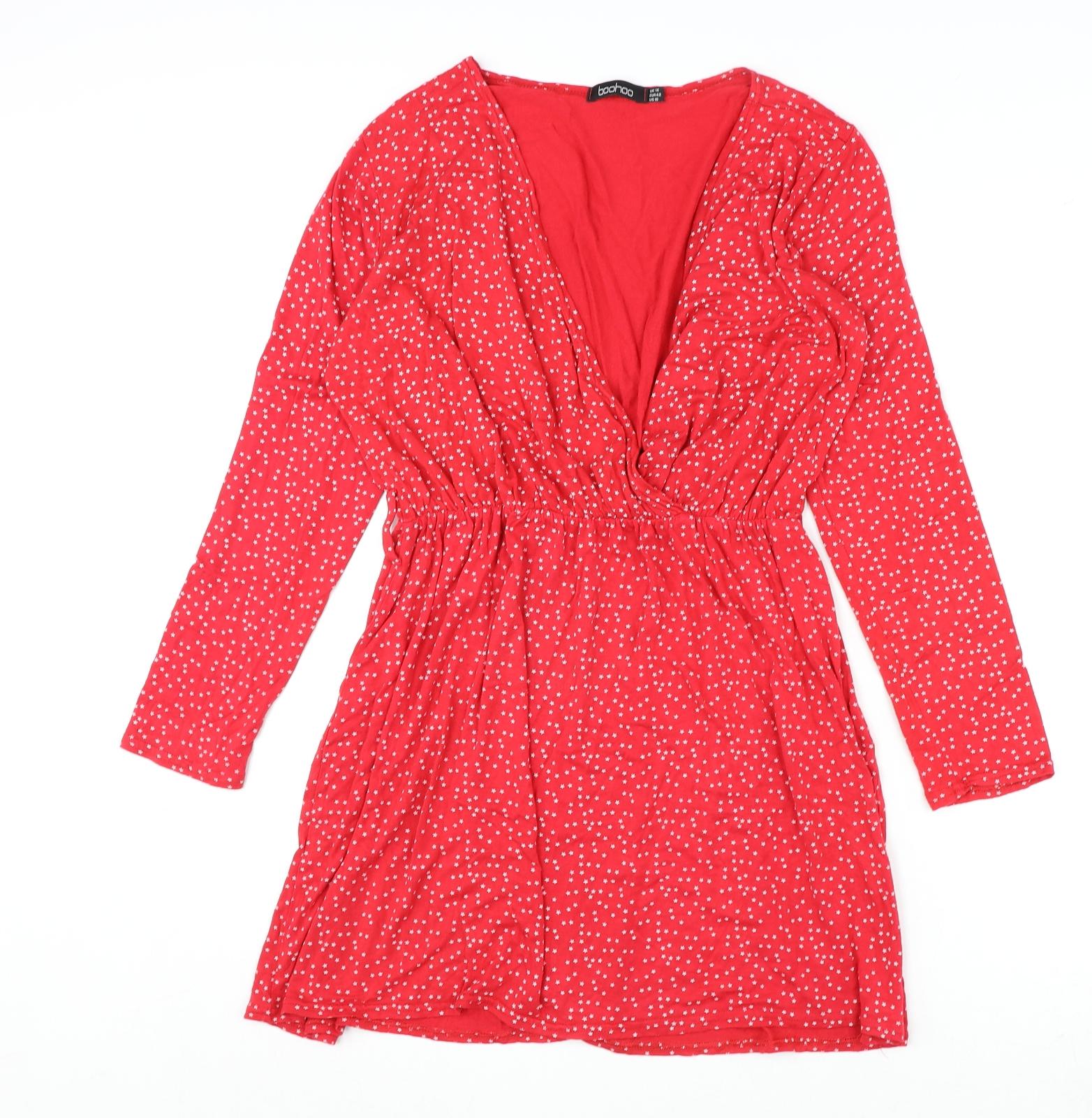 Boohoo Womens Red Geometric Polyester A-Line Size 14 V-Neck Pullover - Star Print