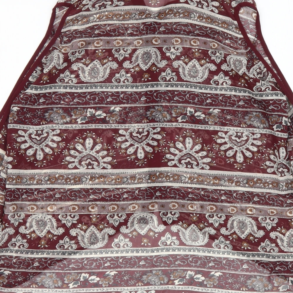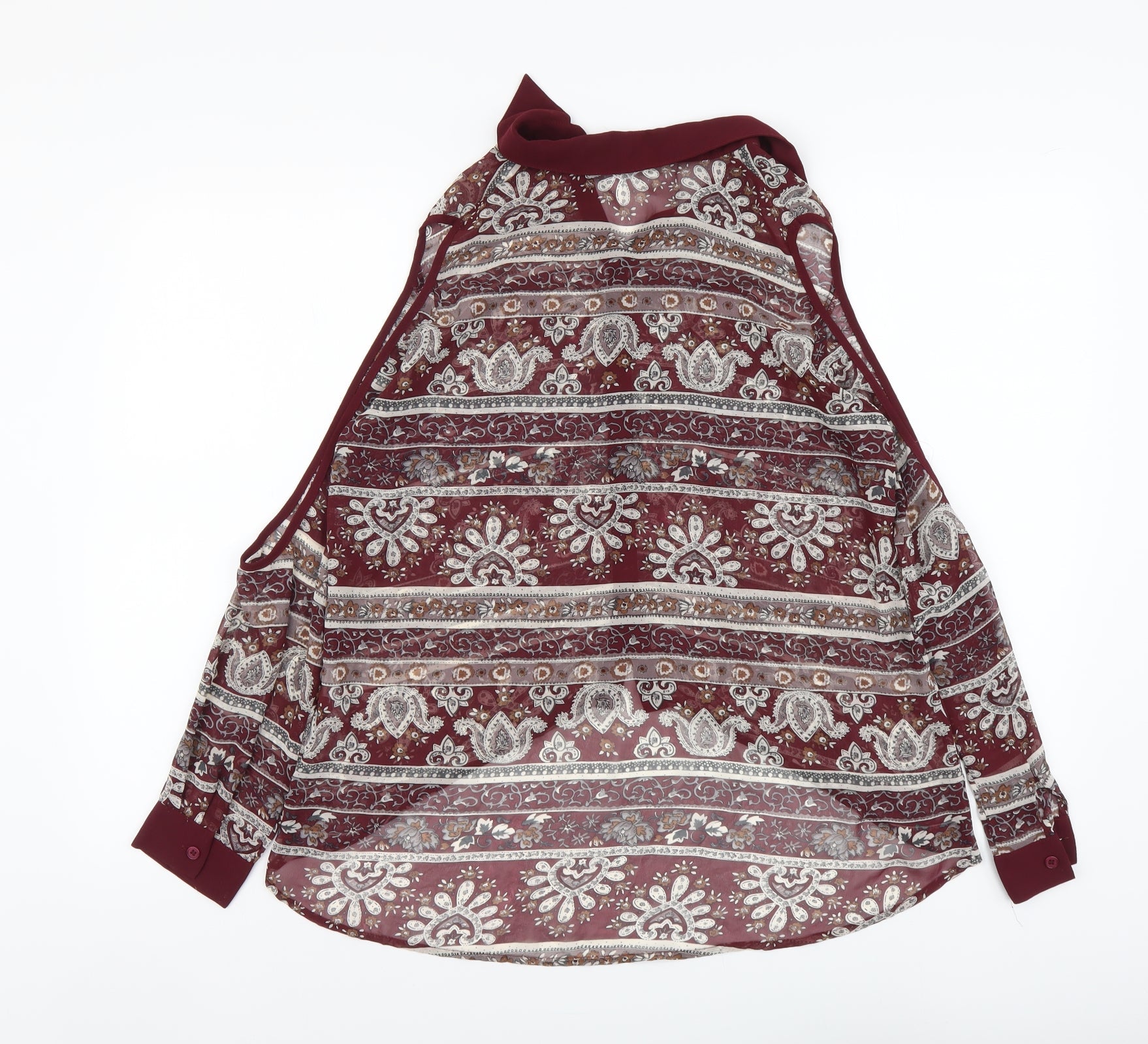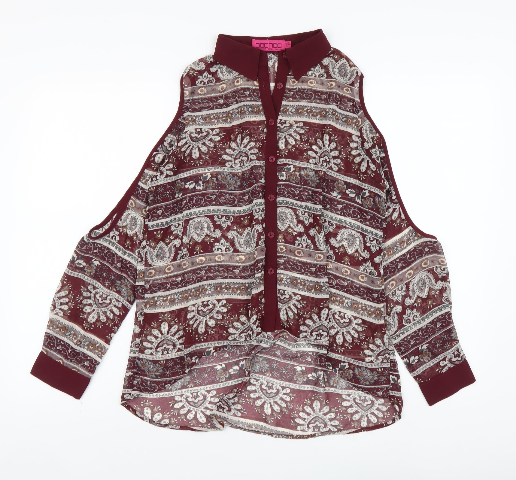 Boohoo Womens Red Geometric Polyester Basic Button-Up Size 6 Collared