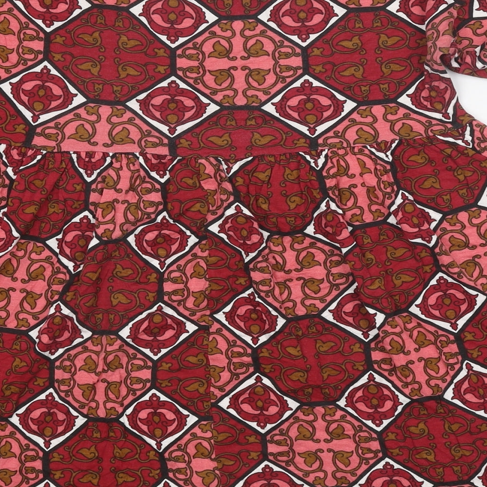 Boohoo Womens Red Geometric Viscose Fit & Flare Size 6 Round Neck Pullover