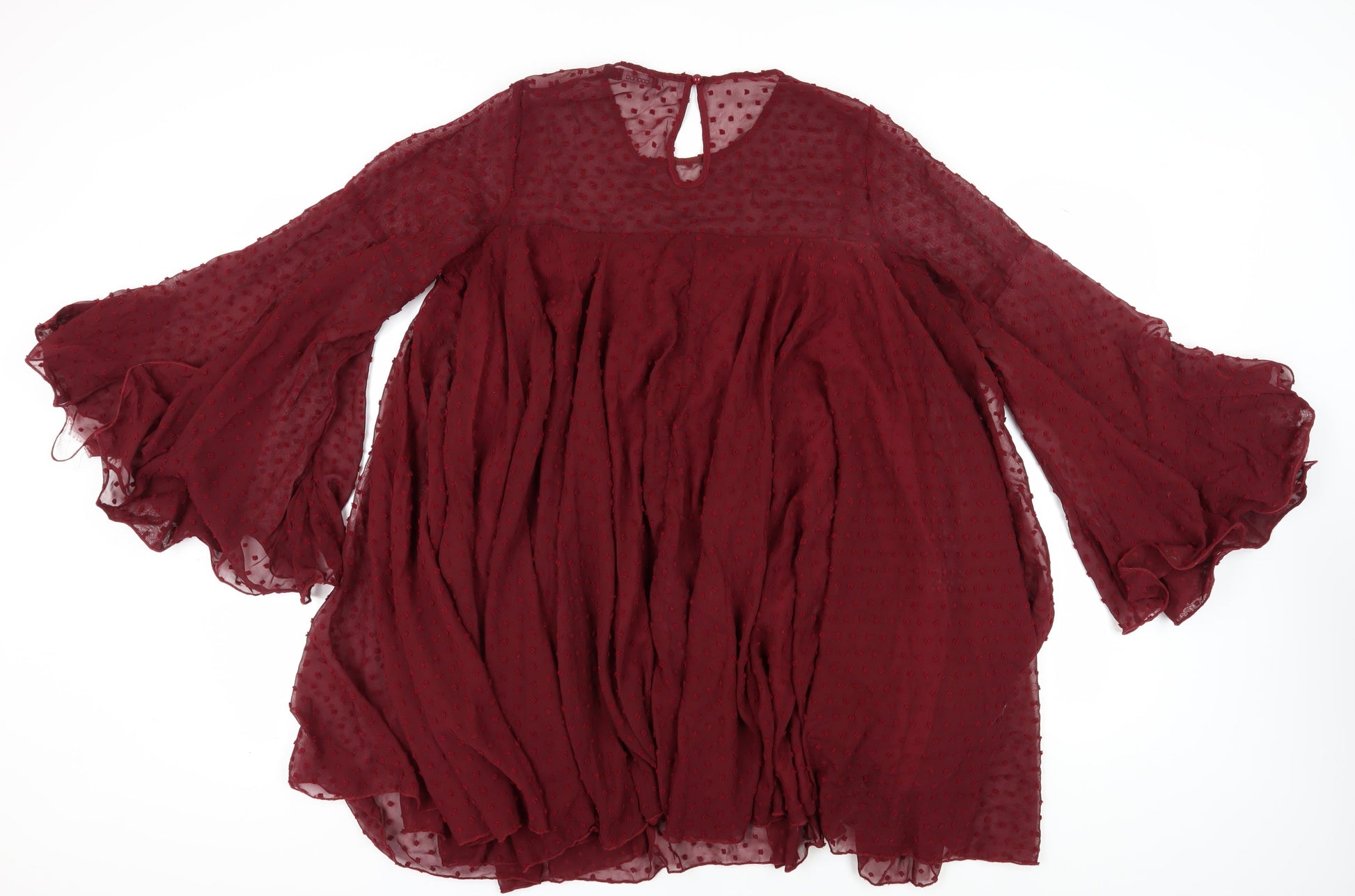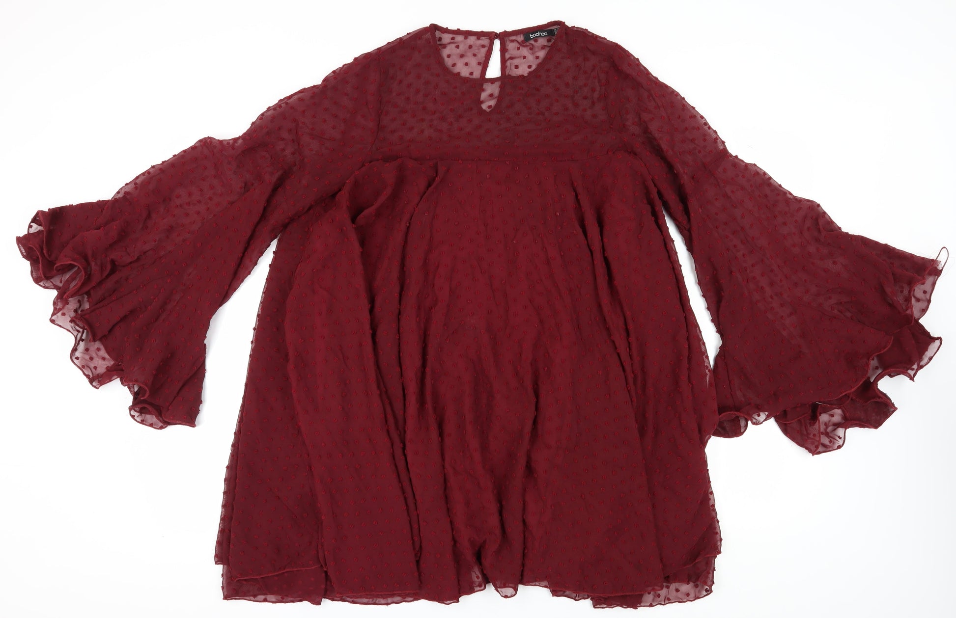 Boohoo Women's Red Midi Trapeze Dress, UK Size 14, Ruffle Accent