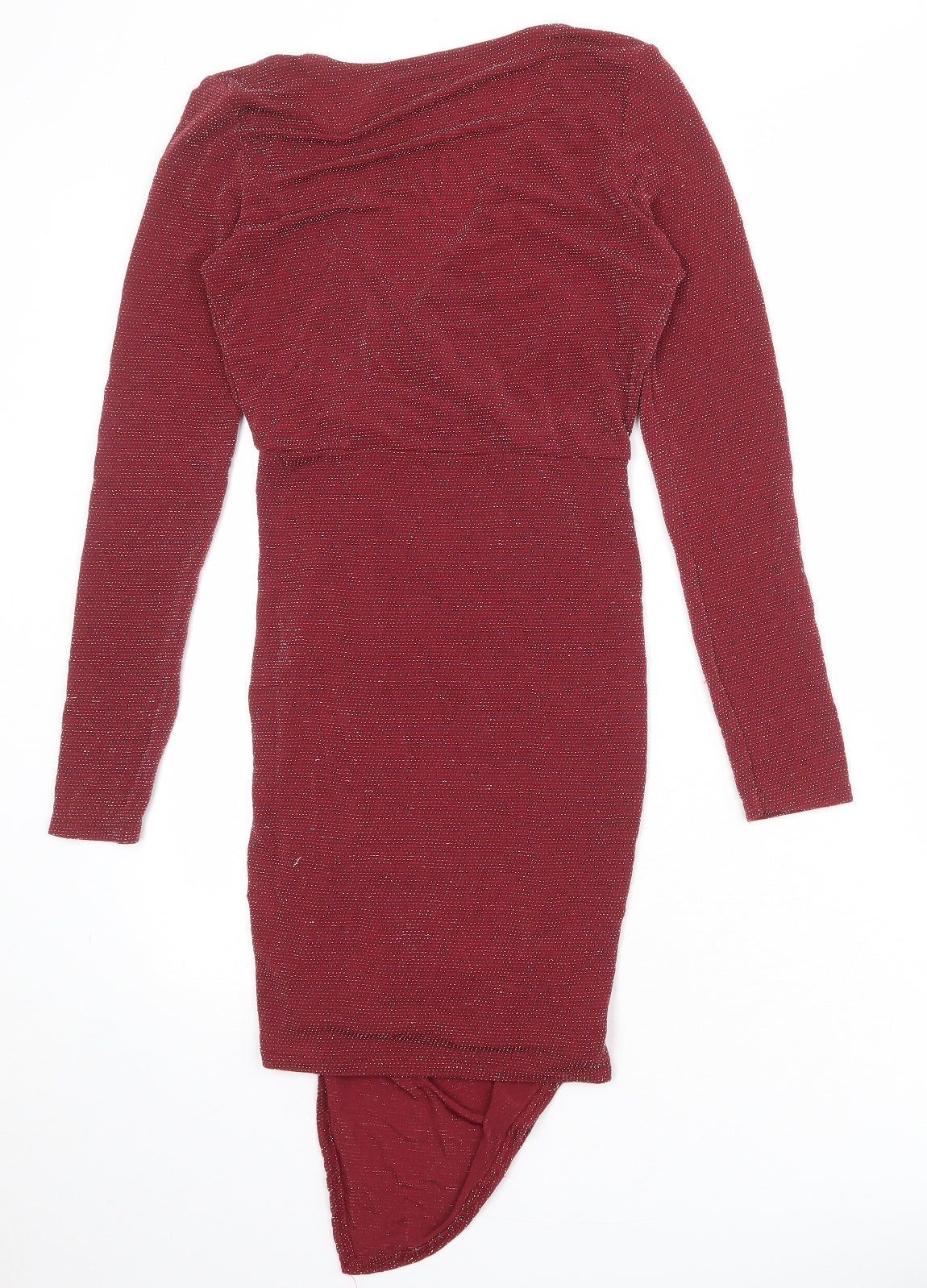 Boohoo Womens Red Nylon A-Line Size 10 V-Neck Pullover