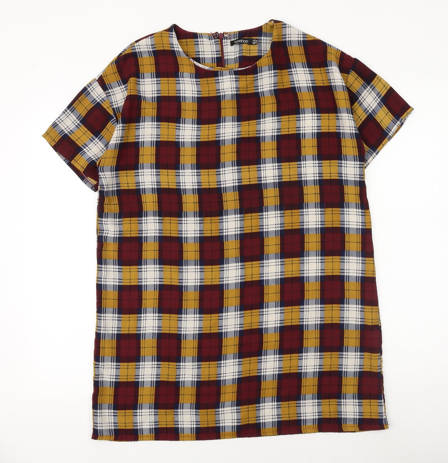Boohoo Womens Red Plaid Polyester T-Shirt Dress Size 12 Round Neck Zip