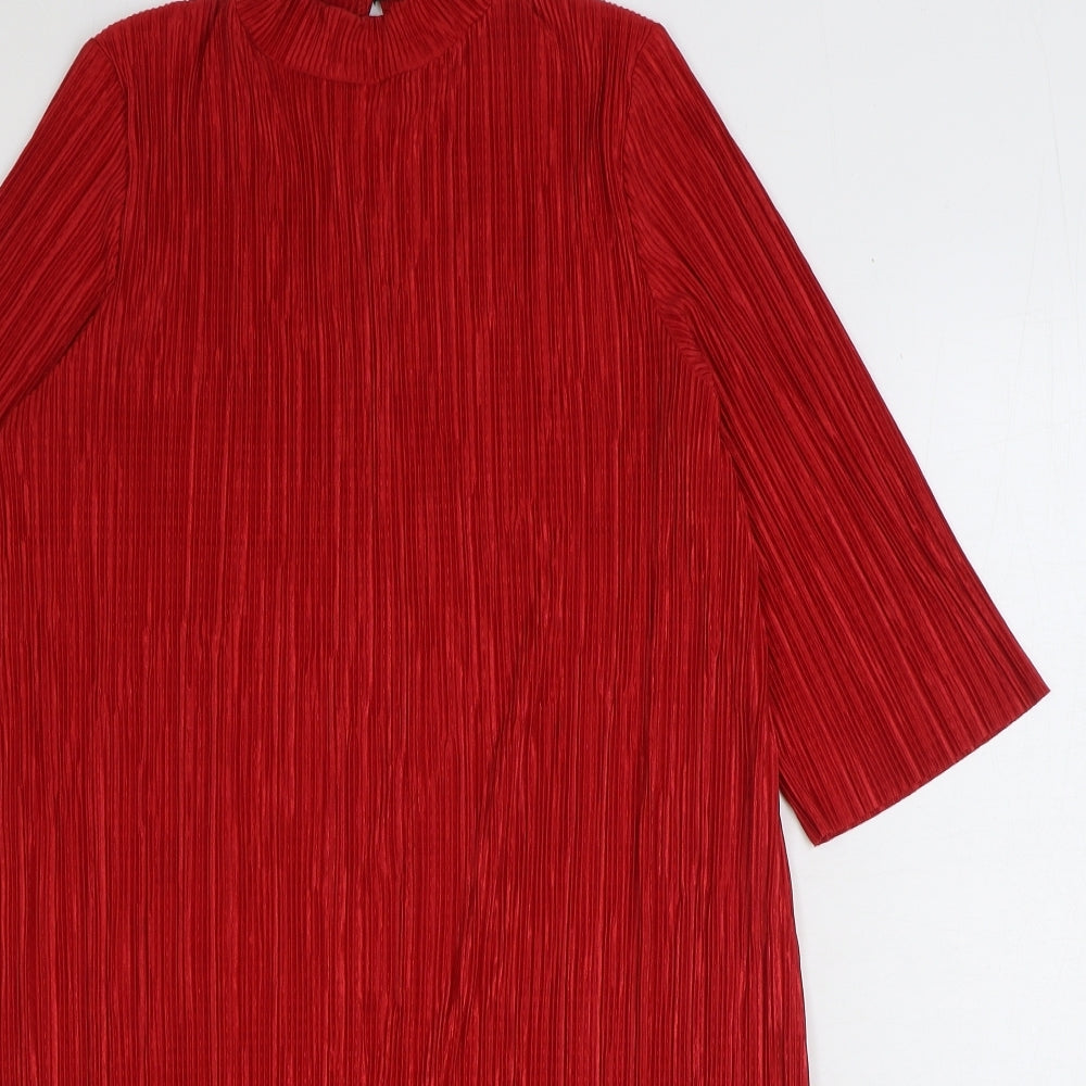 Boohoo Womens Red Polyester A-Line Size 12 Mock Neck Button