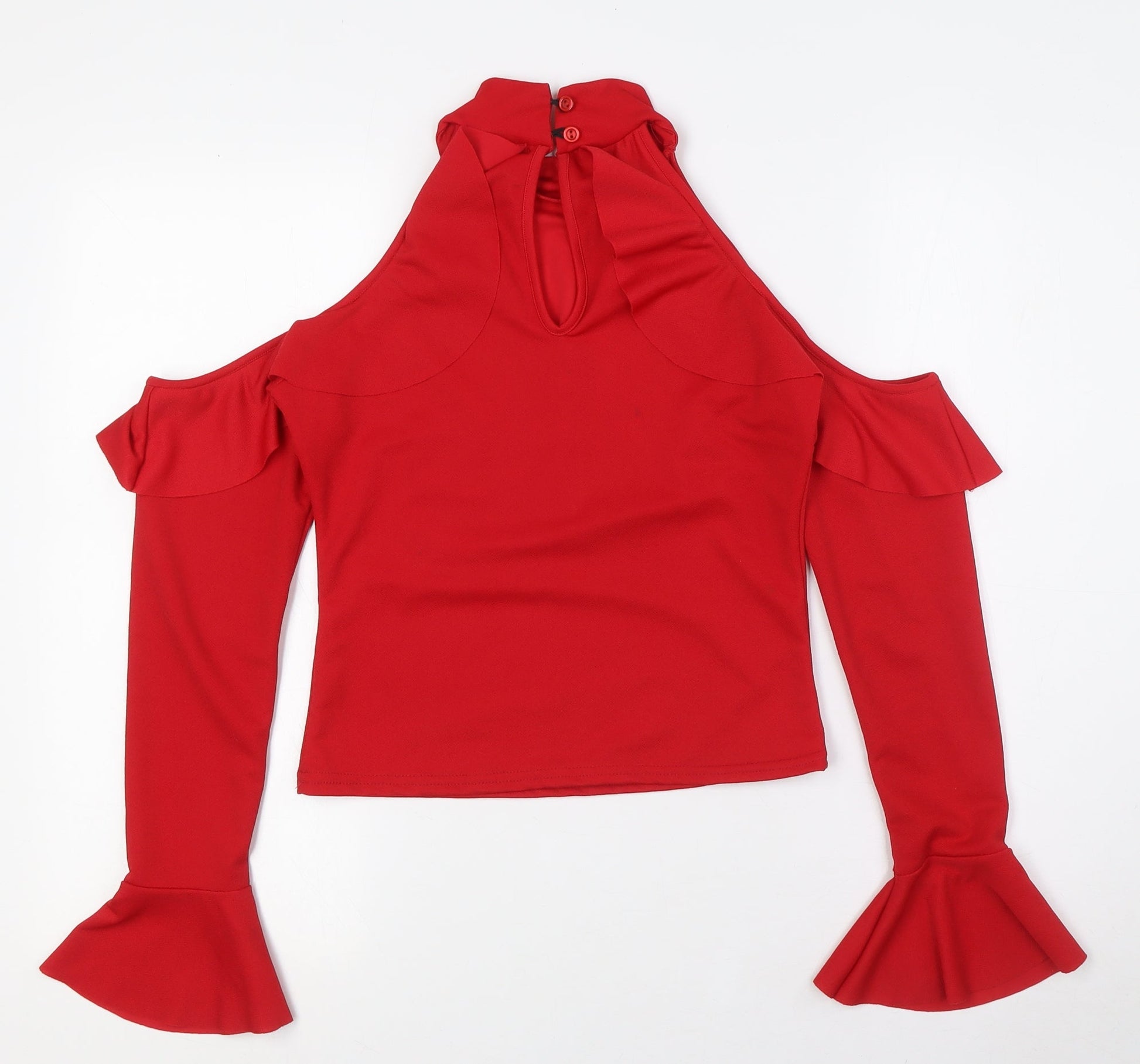 Boohoo Womens Red Polyester Basic Button-Up Size 10 Mock Neck - Cold Shoulder
