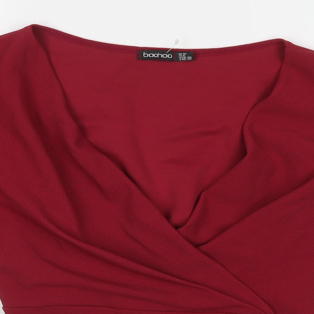Boohoo Womens Red Polyester Basic T-Shirt Size 12 V-Neck