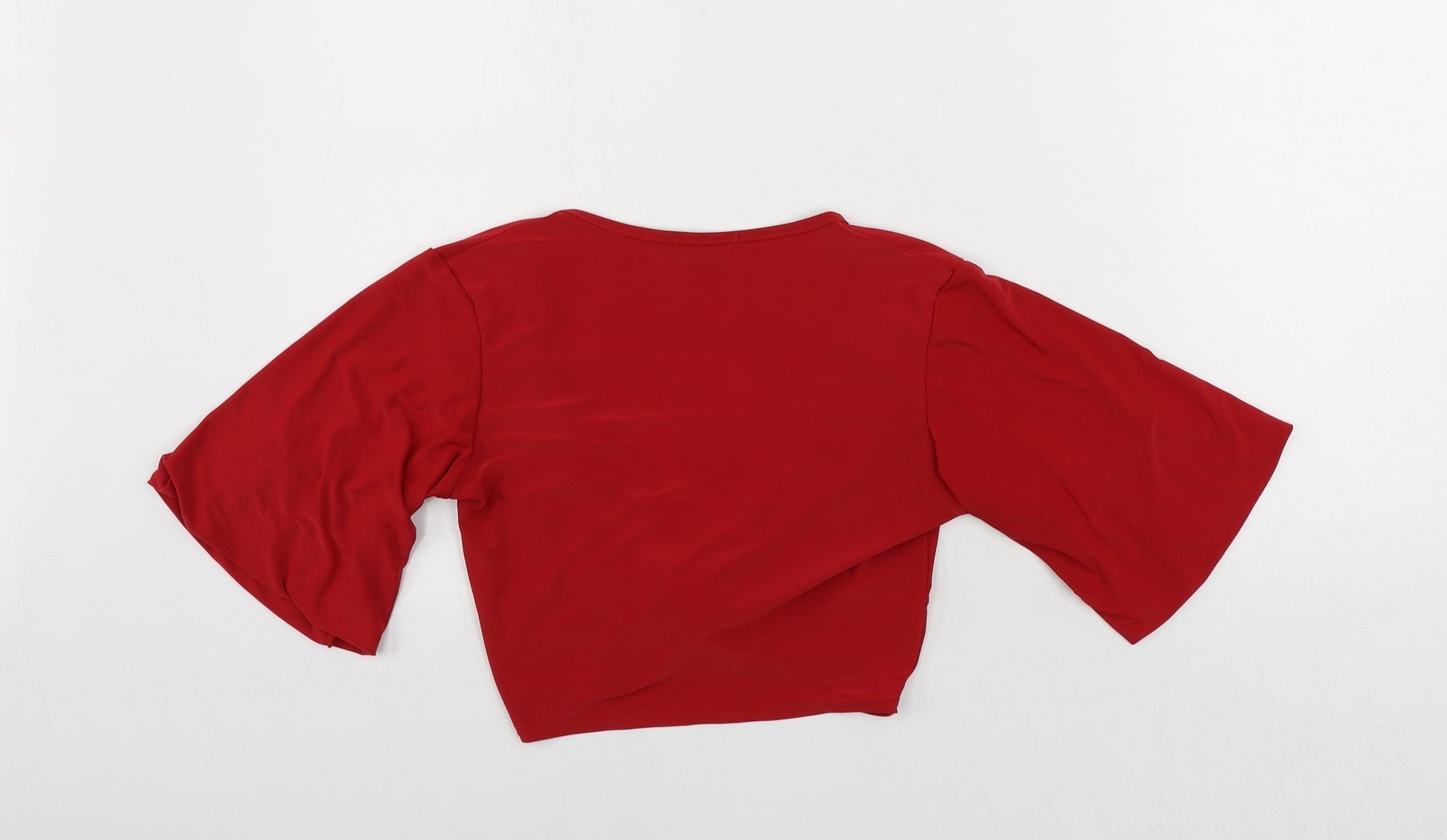 Boohoo Womens Red Polyester Cropped Blouse Size 10 V-Neck - Front Twist