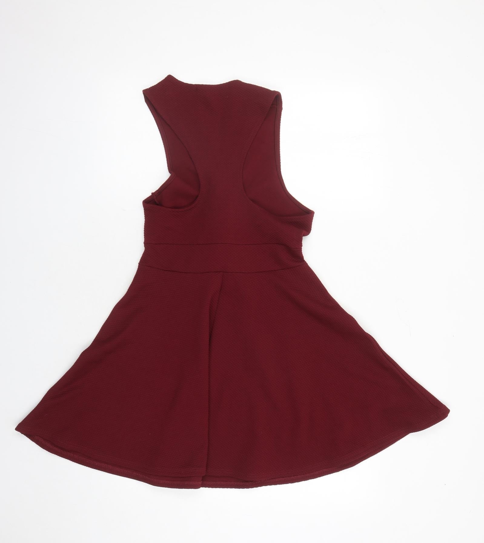 Boohoo Womens Red Polyester Fit & Flare Size 12 Round Neck Pullover