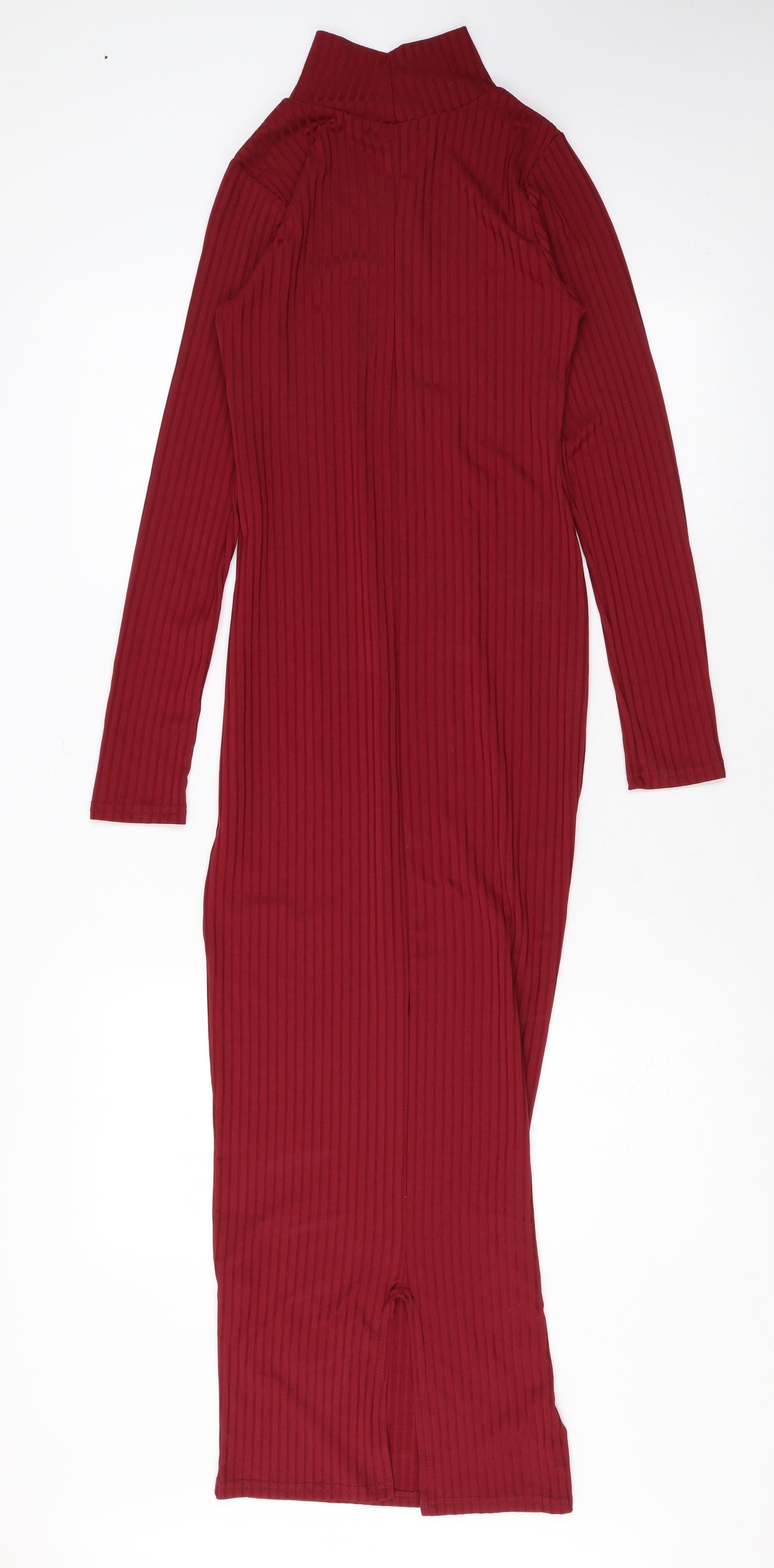 Boohoo Womens Red Polyester Maxi Size 8 Mock Neck Pullover