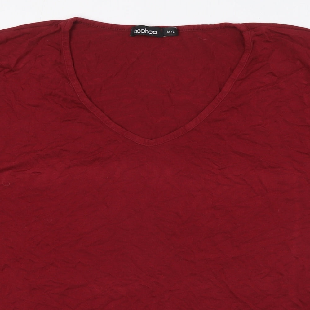 Boohoo Womens Red Viscose Basic T-Shirt Size M Round Neck - Size M-L