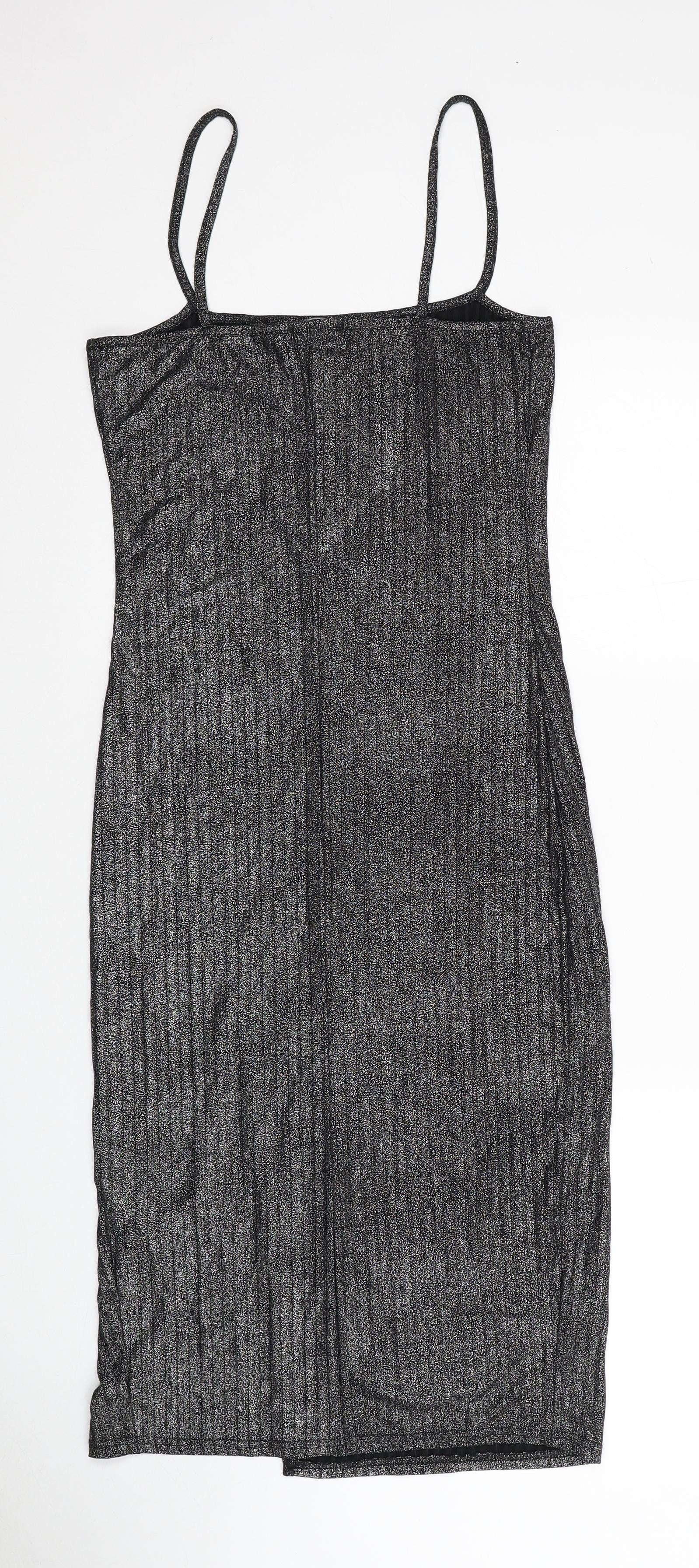 Boohoo Womens Silver Polyester Slip Dress Size 10 Square Neck Pullover