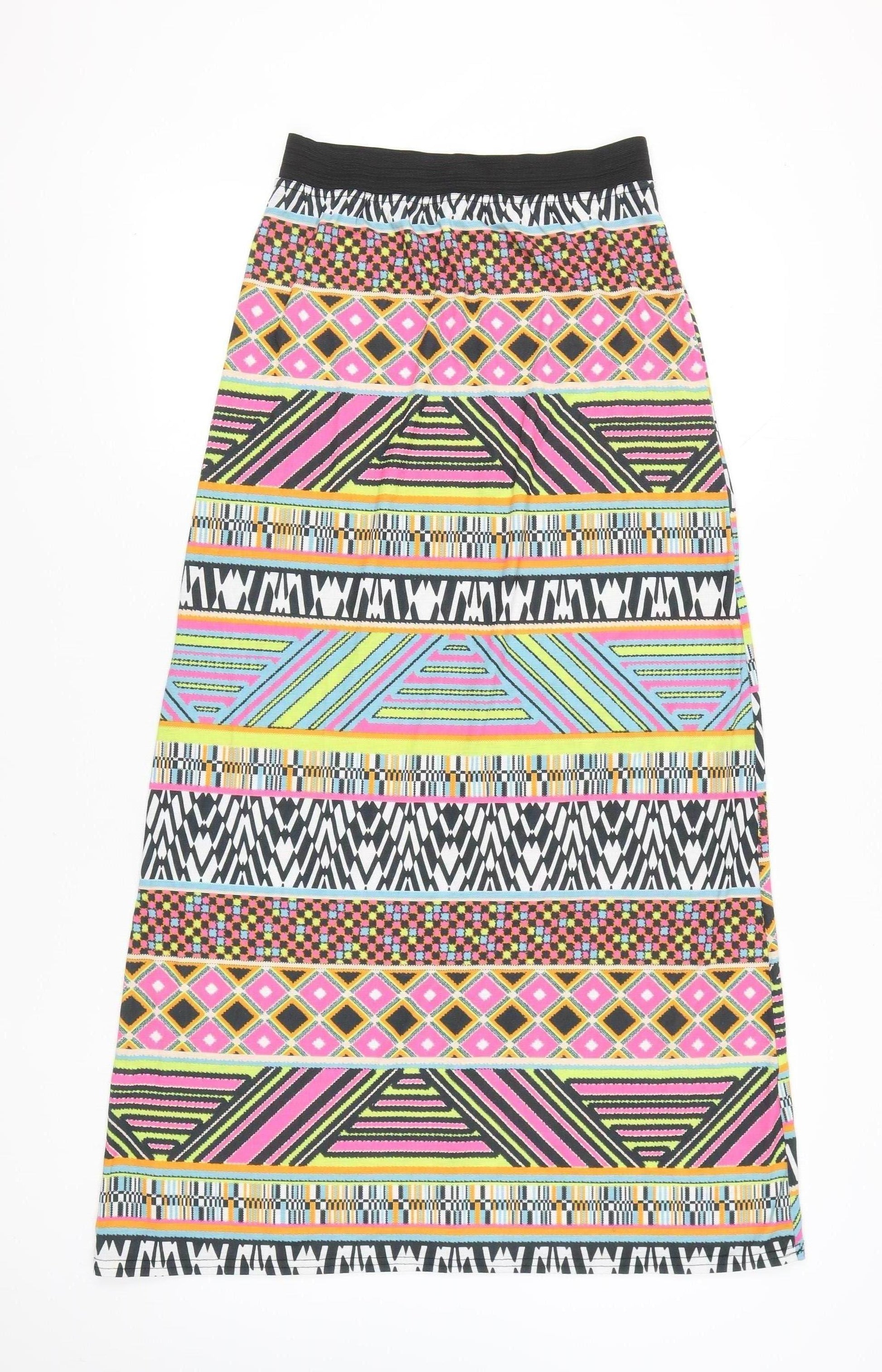 Boohoo Womens Skirt Size 16 Multicoloured Tribal Print A-Line Midi Polyester Stretch