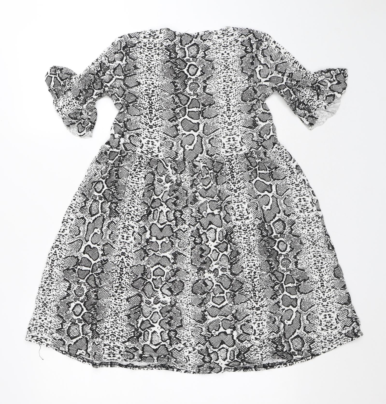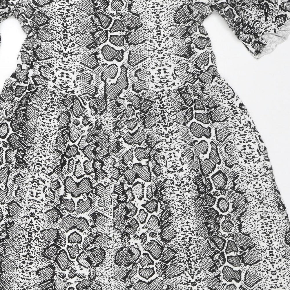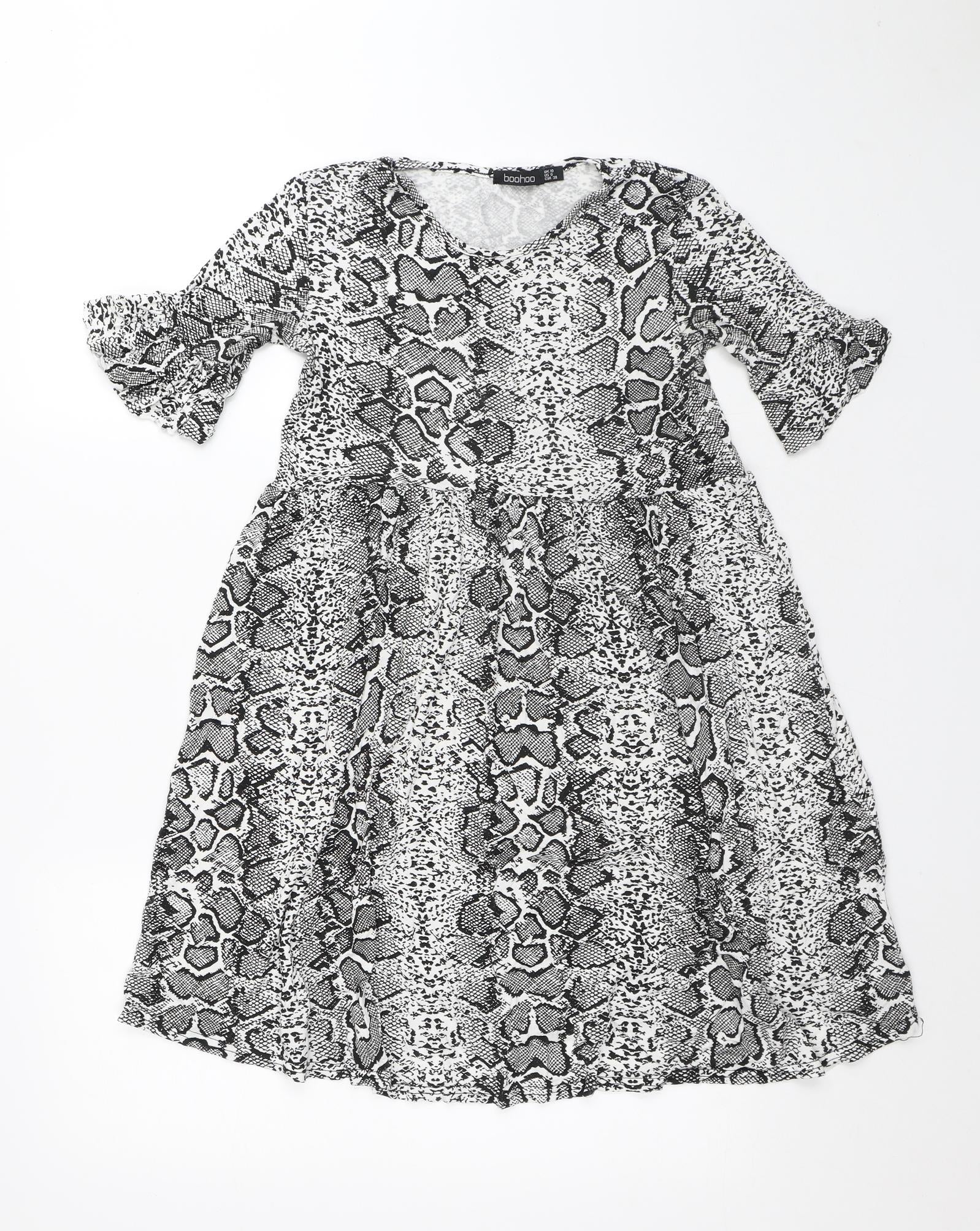 Boohoo Womens White Animal Print Polyester A-Line Size 10 Round Neck - Snake Skin