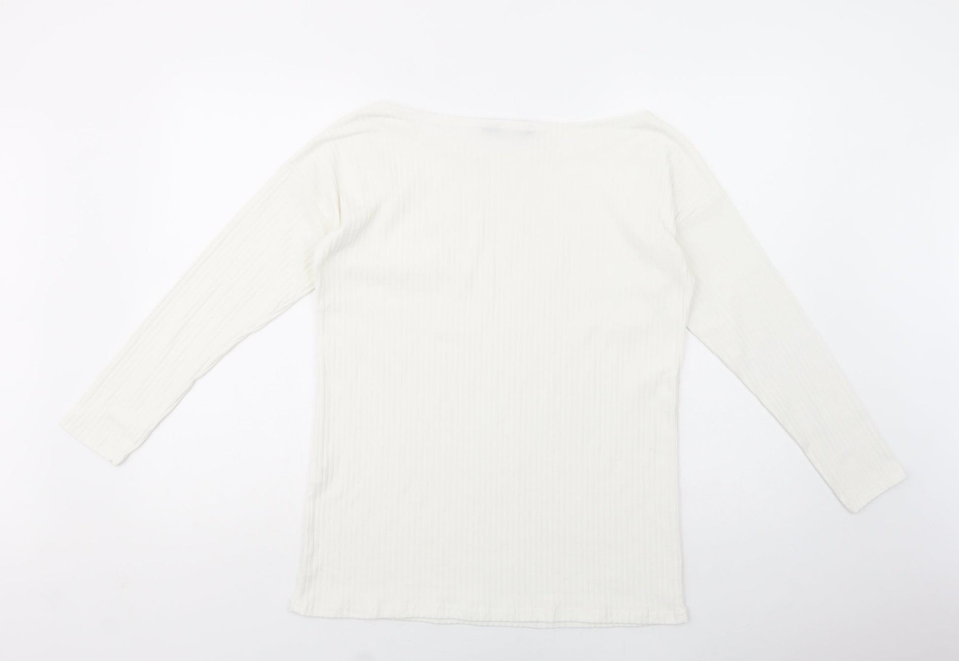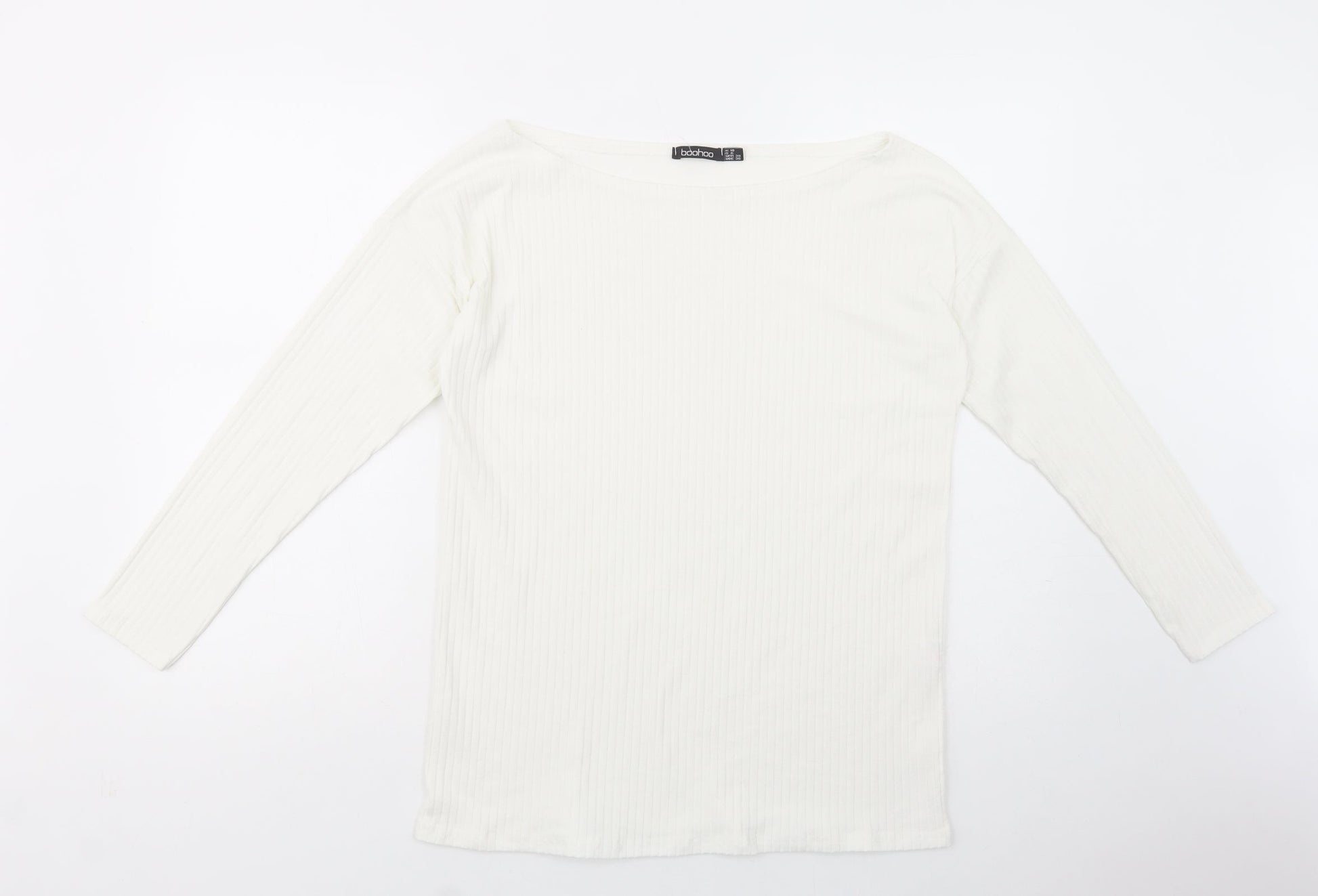 Boohoo Womens White Boat Neck Polyester Pullover Jumper Size 10