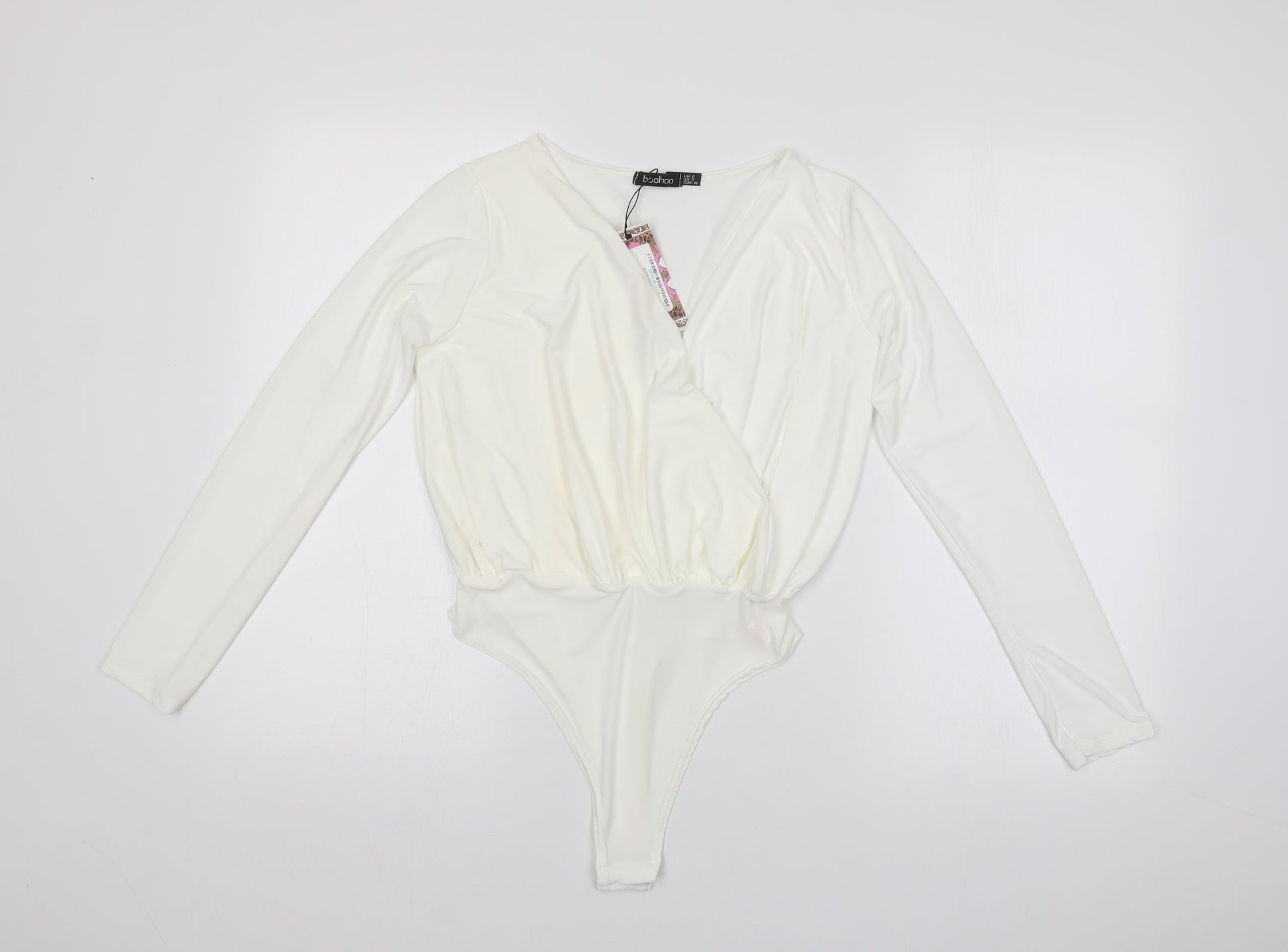 Boohoo Womens White Bodysuit One-Piece Size 6