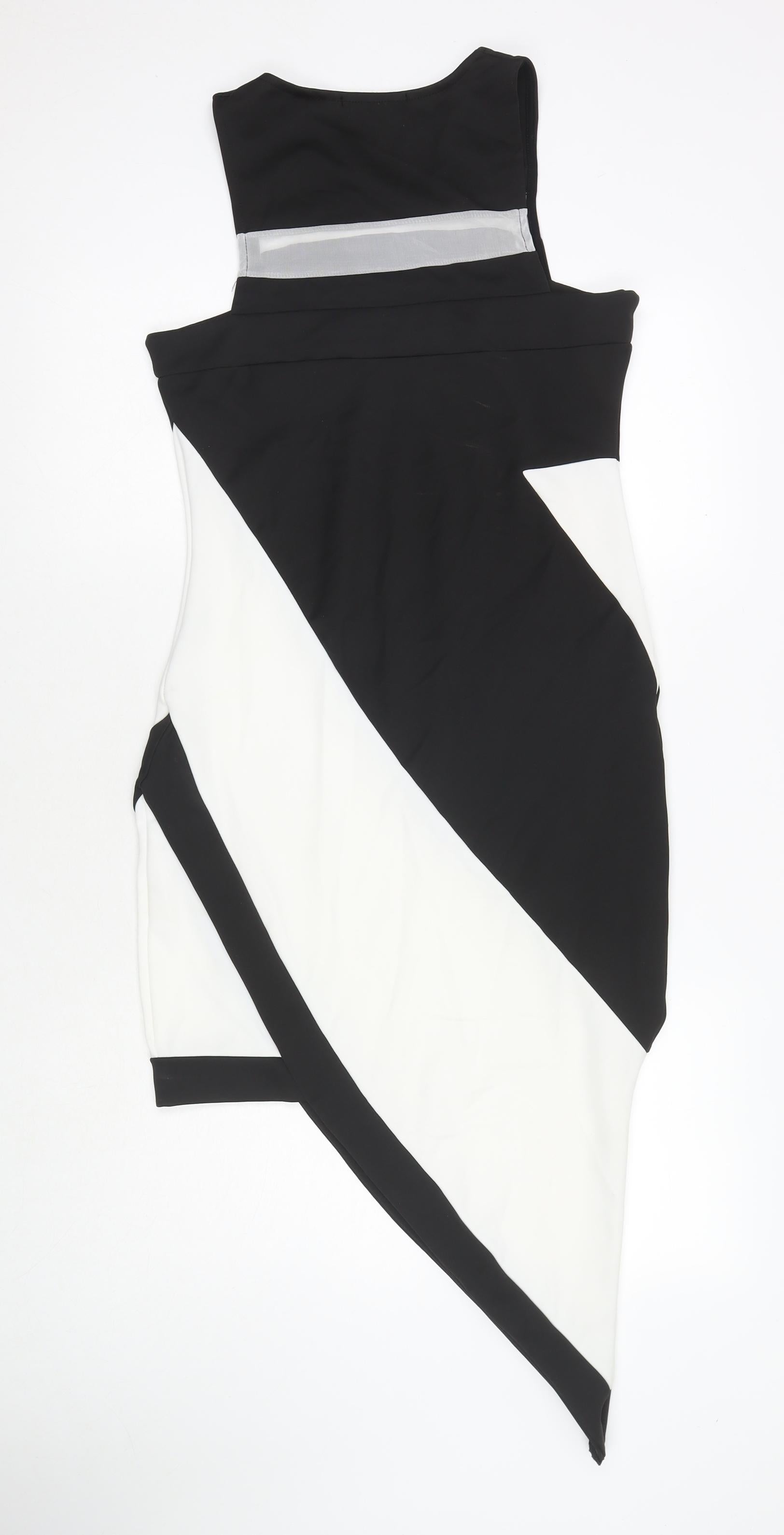Boohoo Womens White Colourblock Polyester Tank Dress Size 12 Round Neck Pullover
