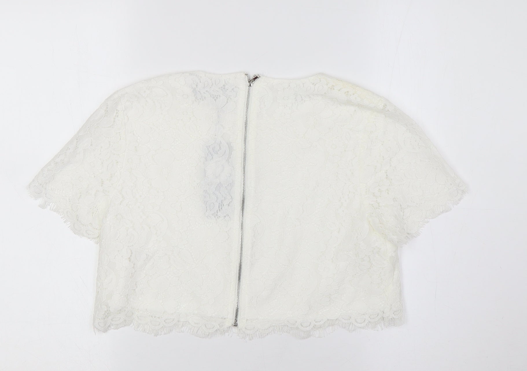 Boohoo Womens White Cotton Cropped Button-Up Size 10 Round Neck
