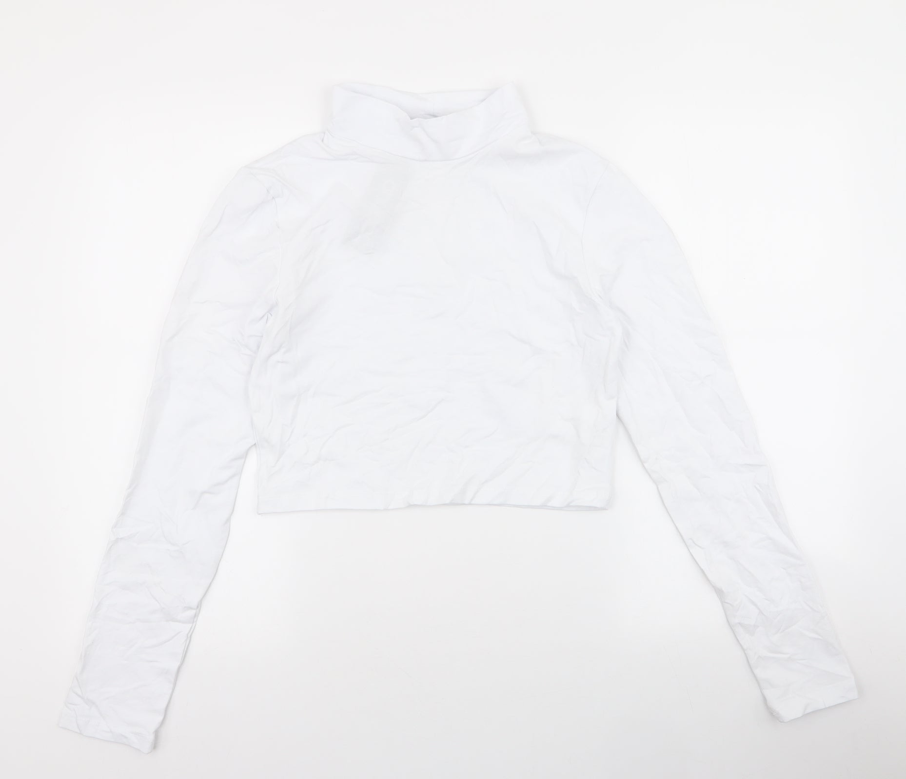 Boohoo Womens White Cotton Cropped T-Shirt Size 16 High Neck