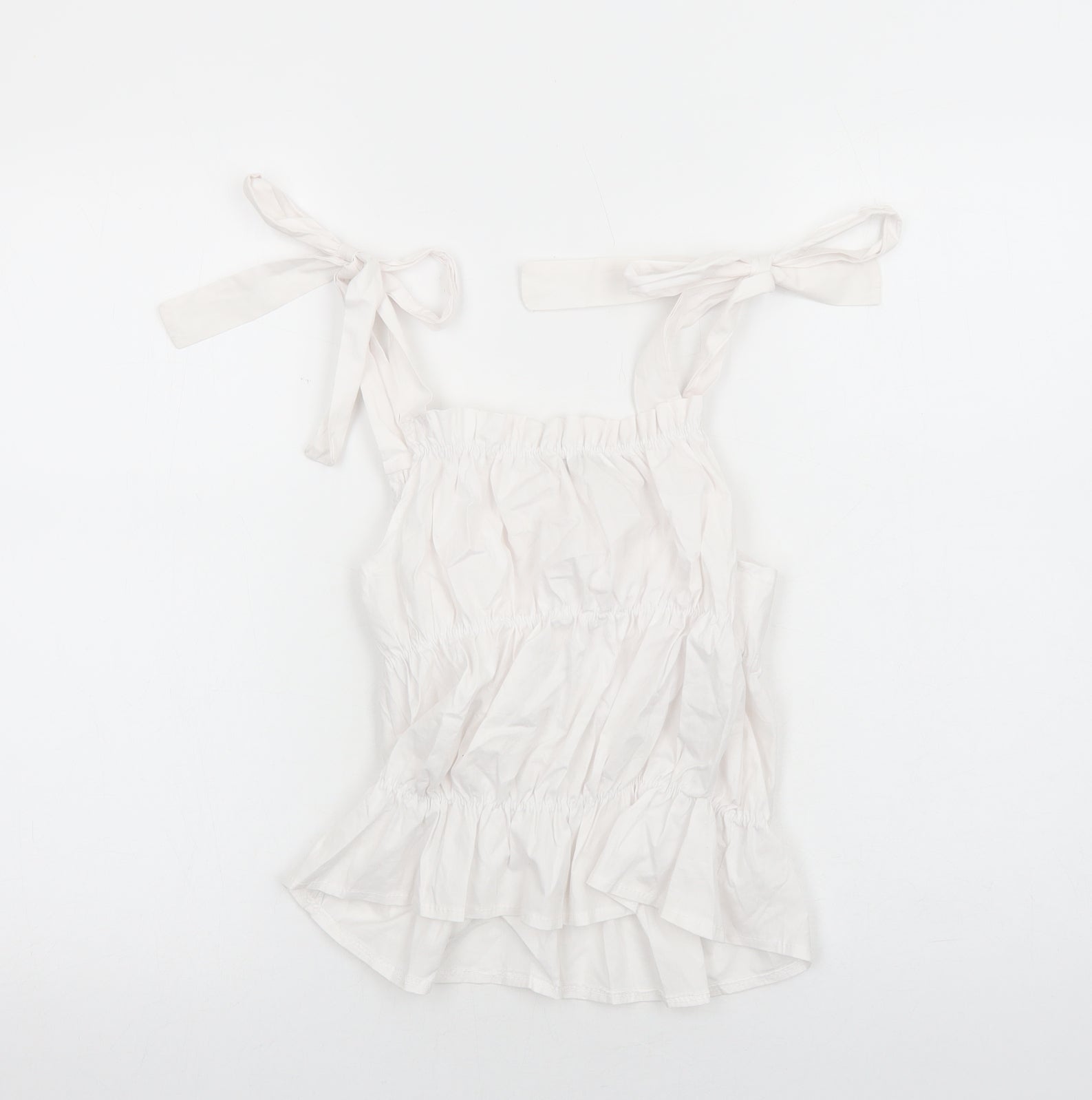 Boohoo Womens White Cotton Cropped Tank Size 10 Square Neck