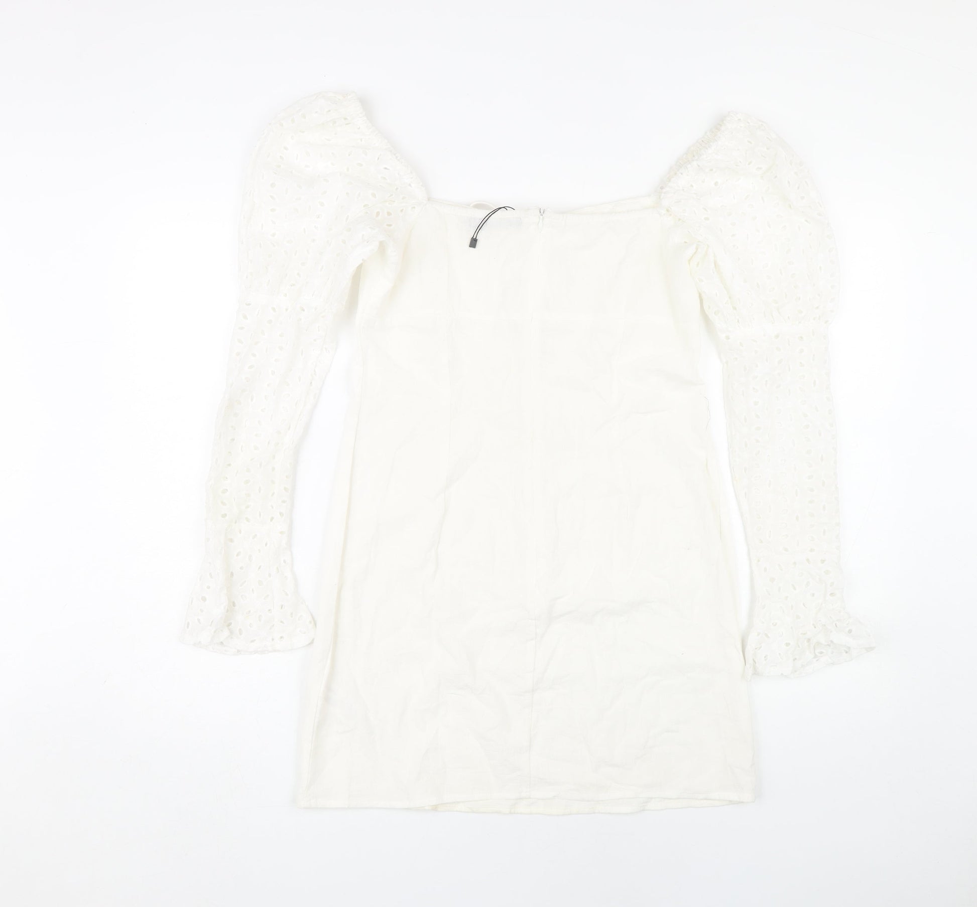 Boohoo Women's White Dress, Size 10, Cotton Elegance
