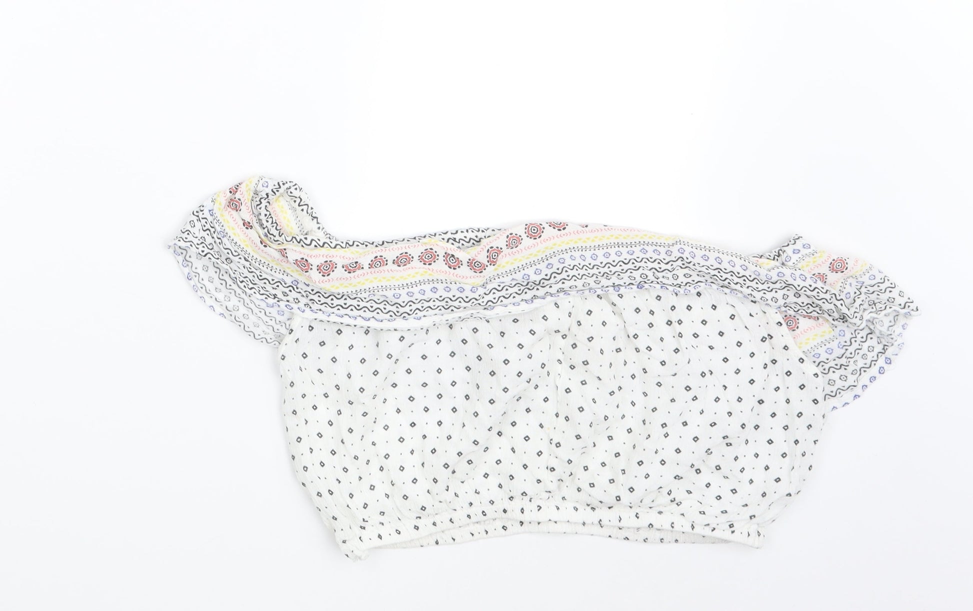 Boohoo Womens White Fair Isle Basic Blouse Size 8