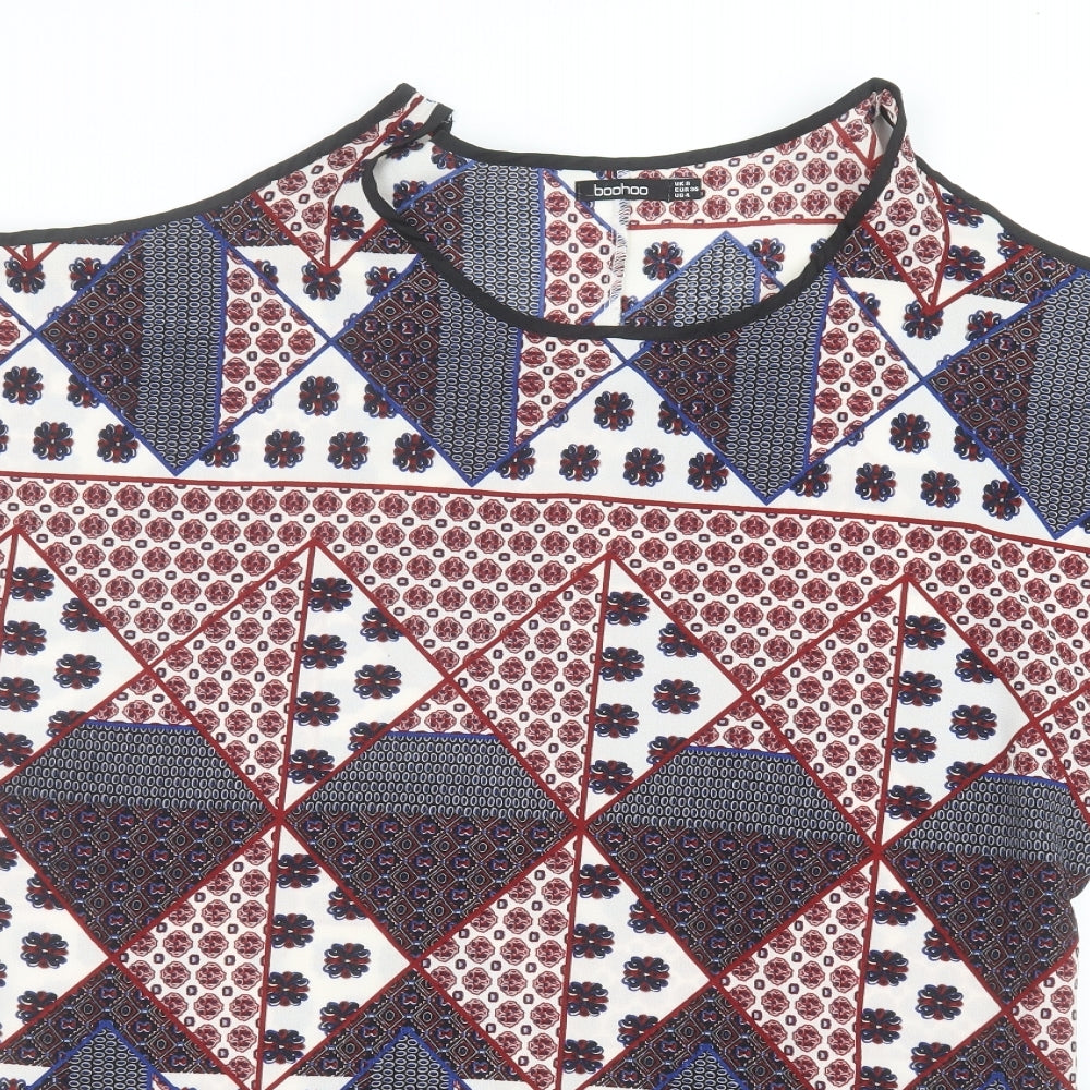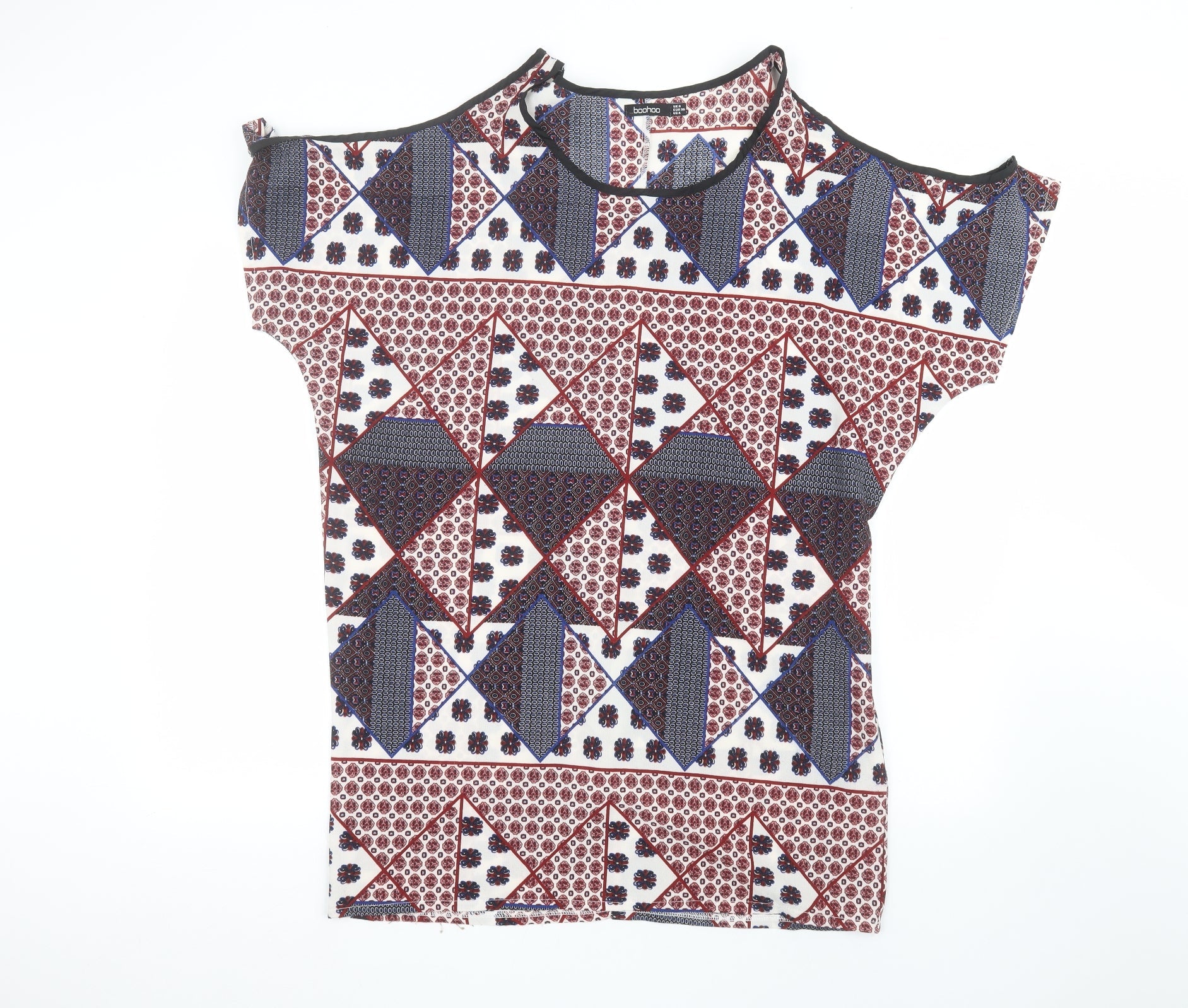 Boohoo Womens White Floral Basic T-Shirt Size 8