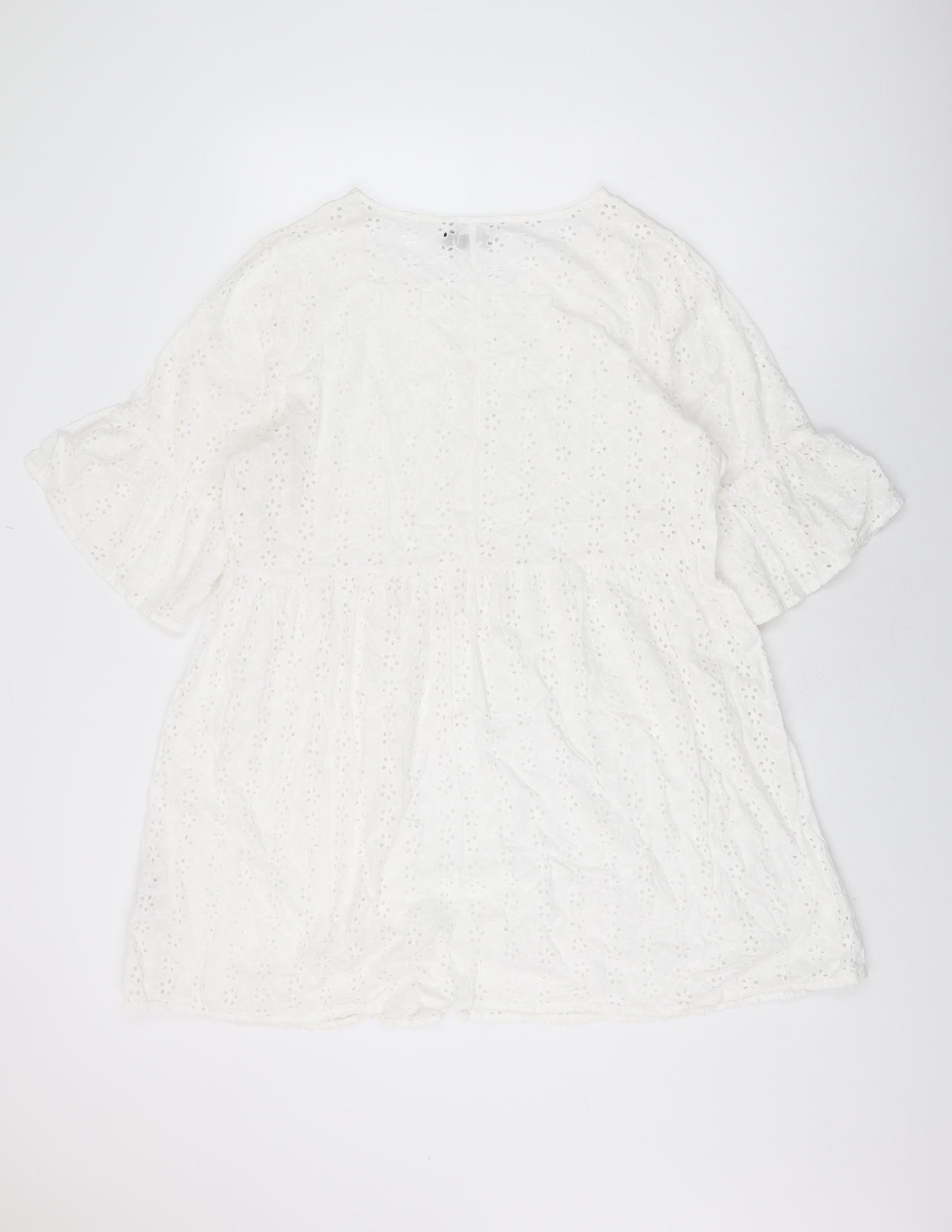 Boohoo Womens White Floral Cotton Shift Size 16 Round Neck Pullover