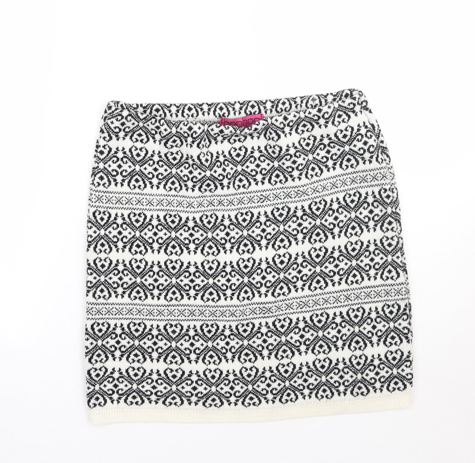Boohoo Womens White Geometric A-Line Skirt Size M