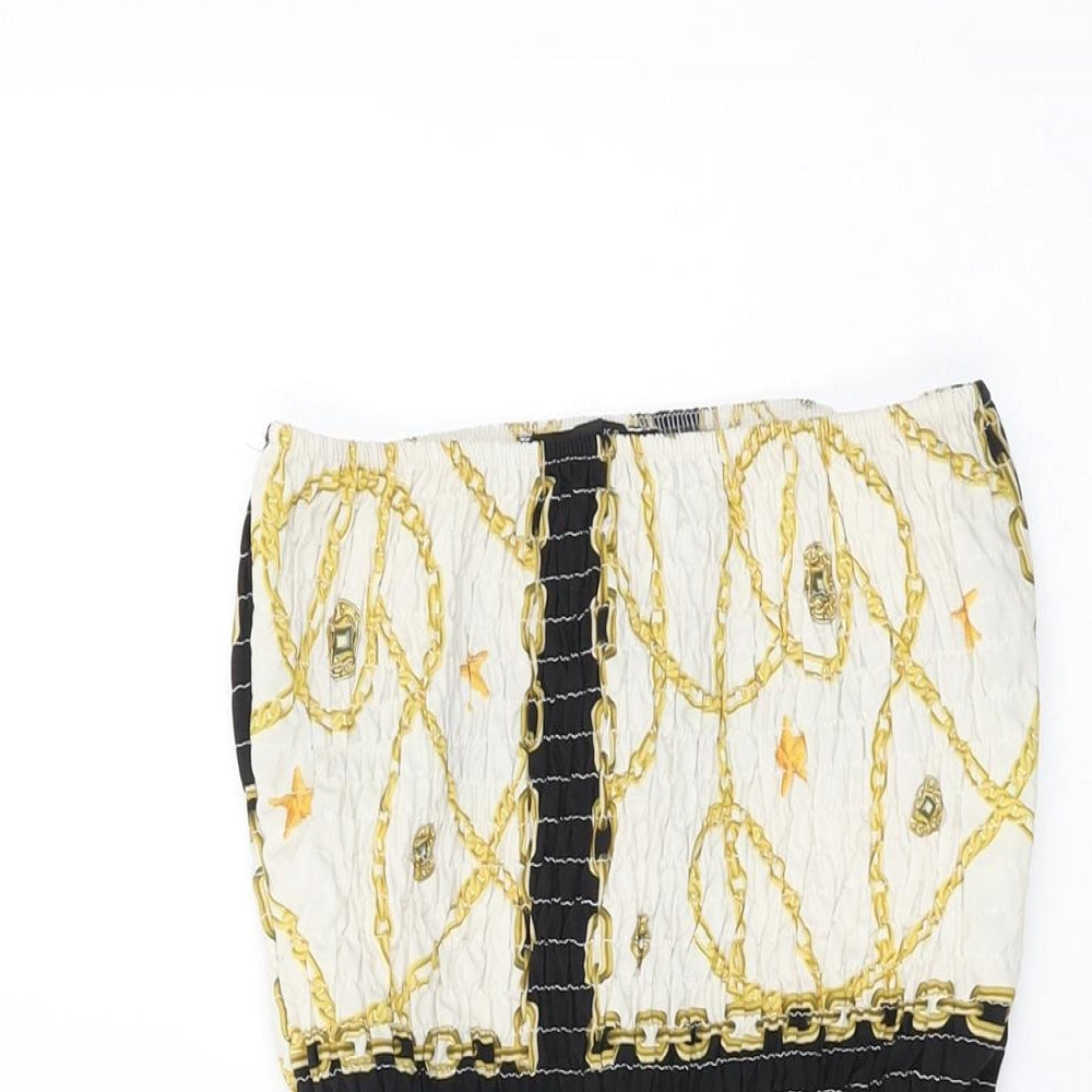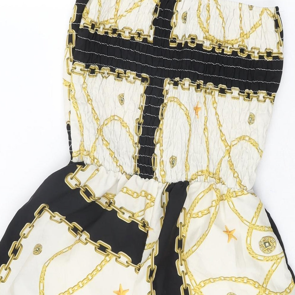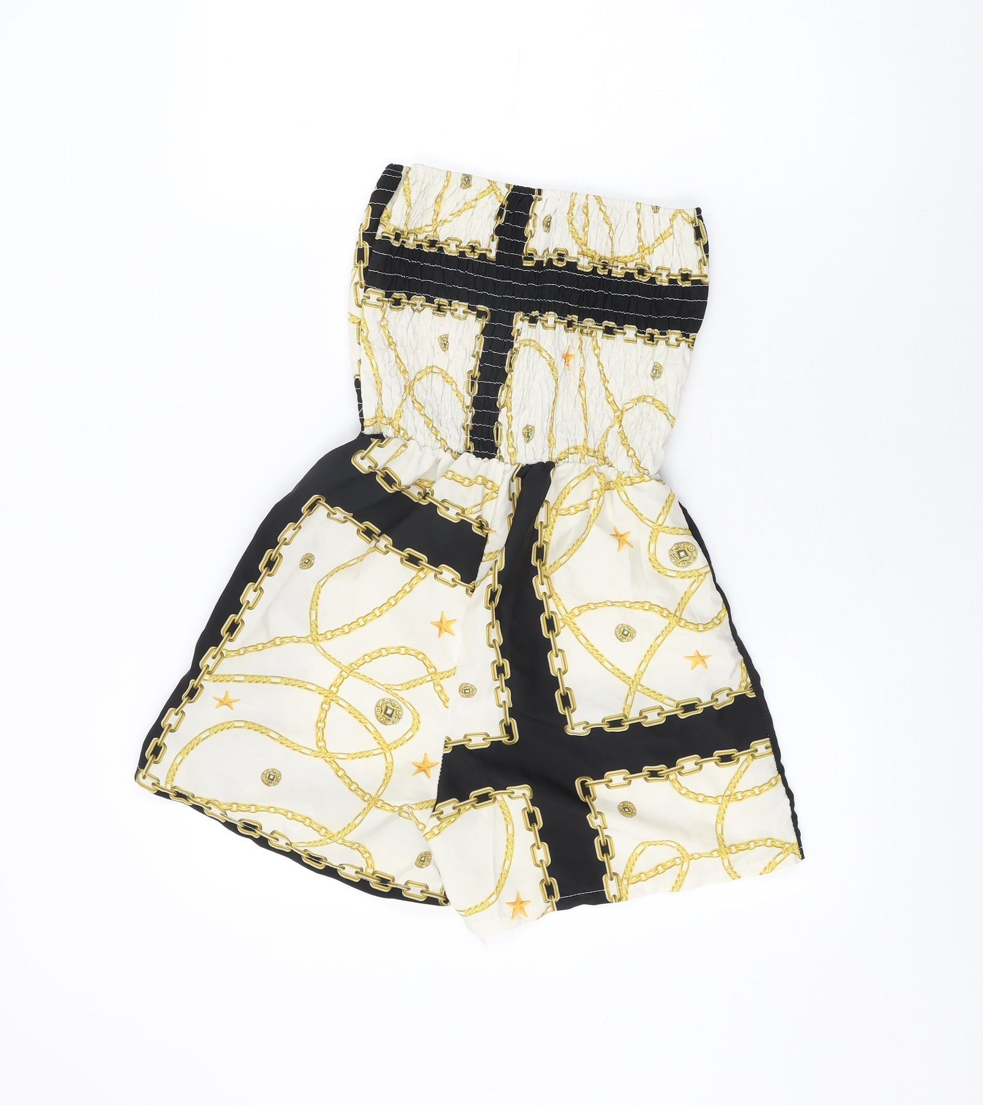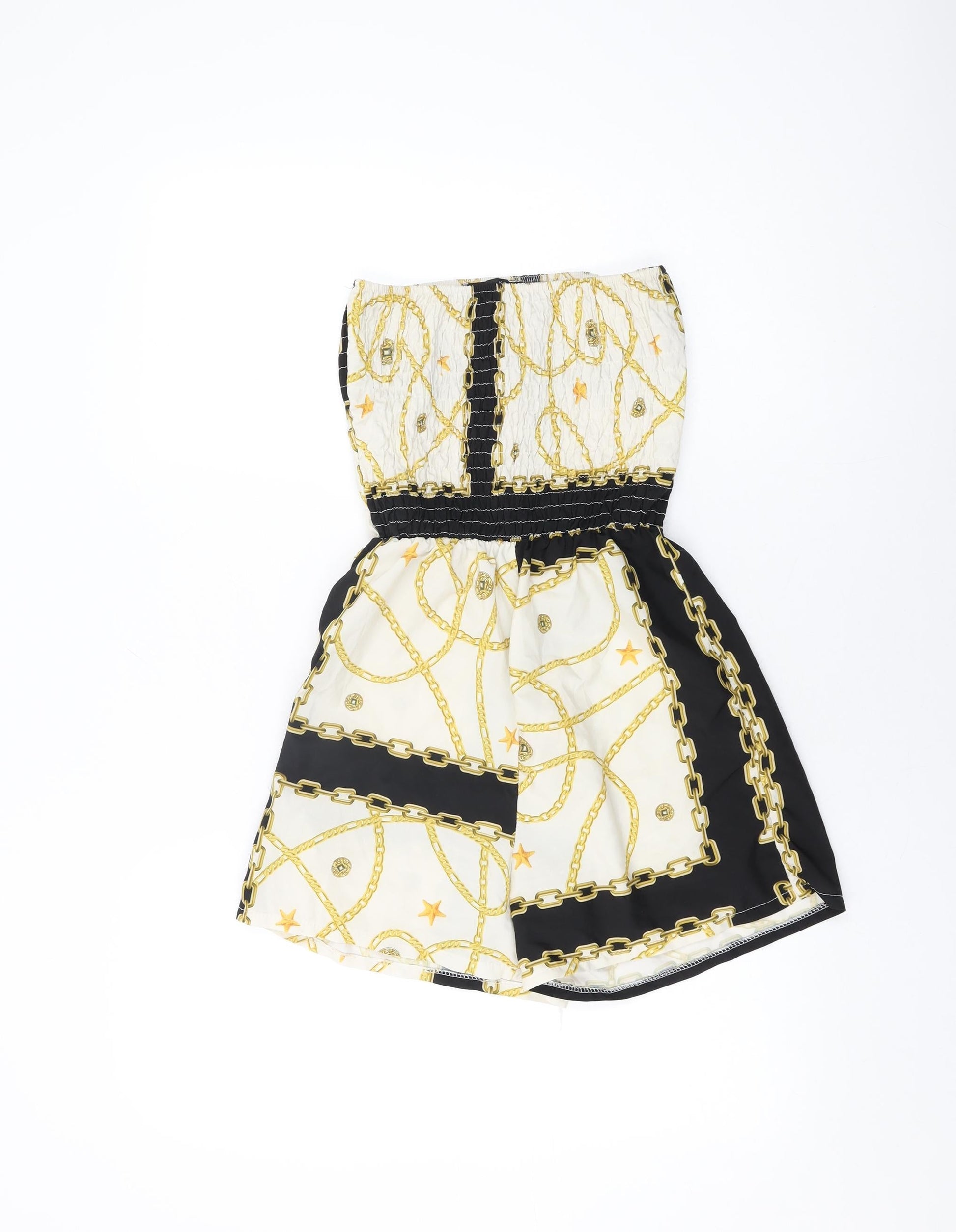 Boohoo Womens White Geometric Polyester Playsuit One-Piece Size 8 Pullover - Chain and Star Print