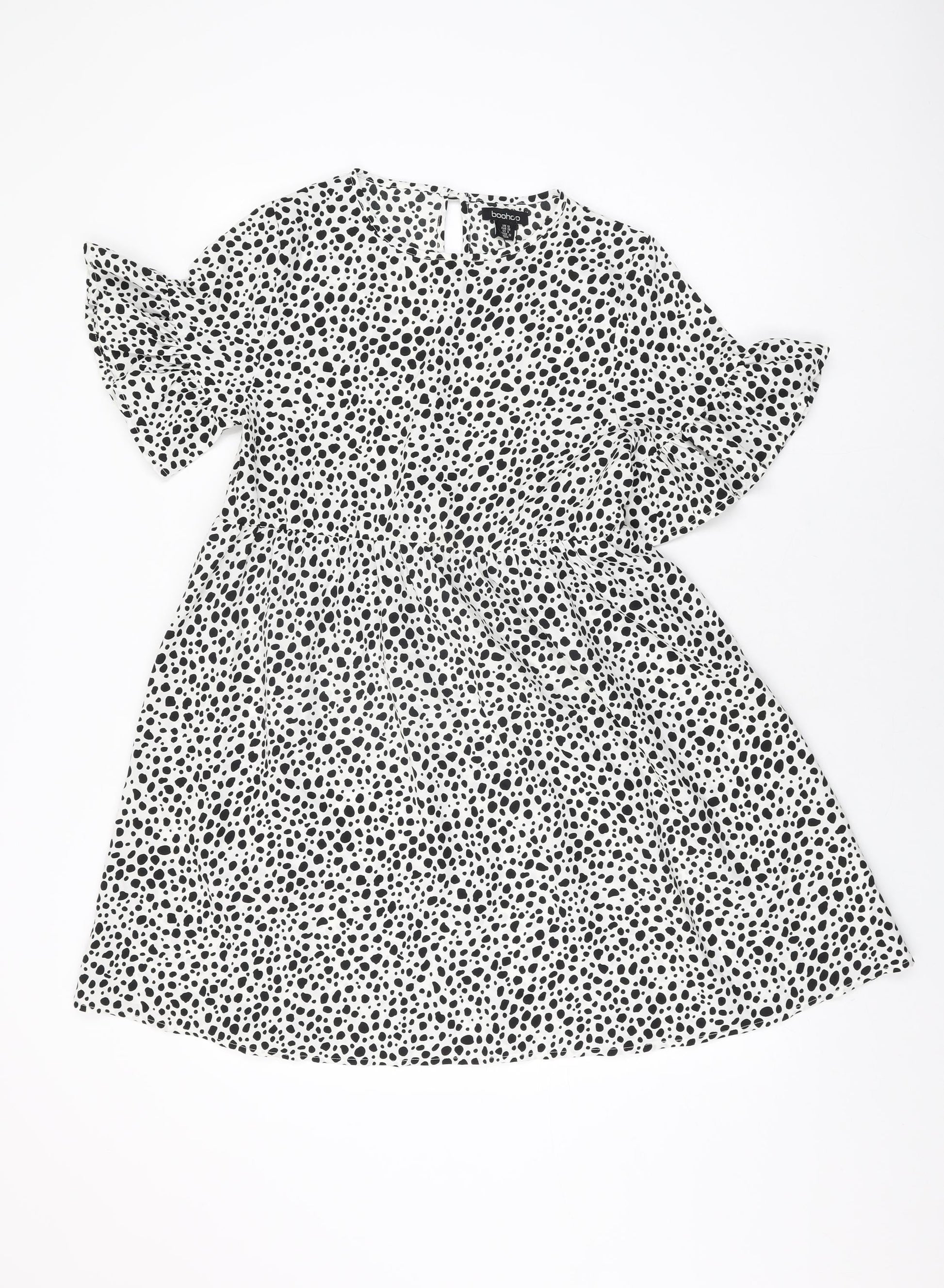 Boohoo Womens White Geometric Polyester Shift Size 10 Round Neck Button