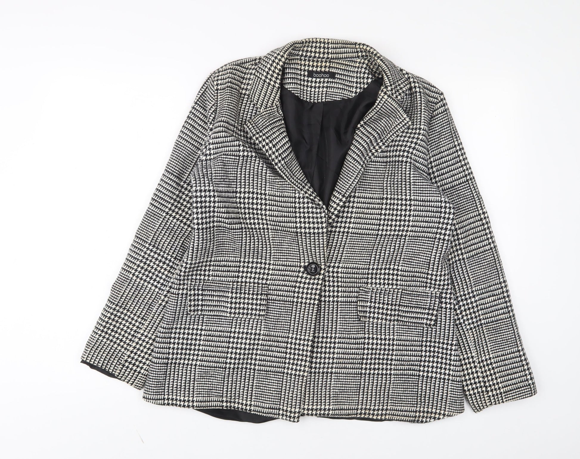 Boohoo Womens White Herringbone Jacket Size 12 Button