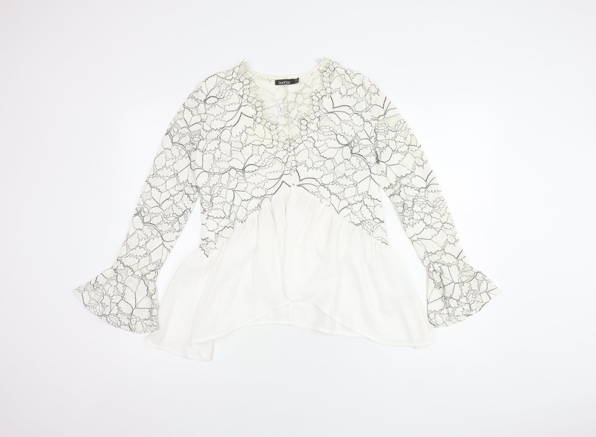 boohoo Women's White Lace Tunic Blouse Size 8