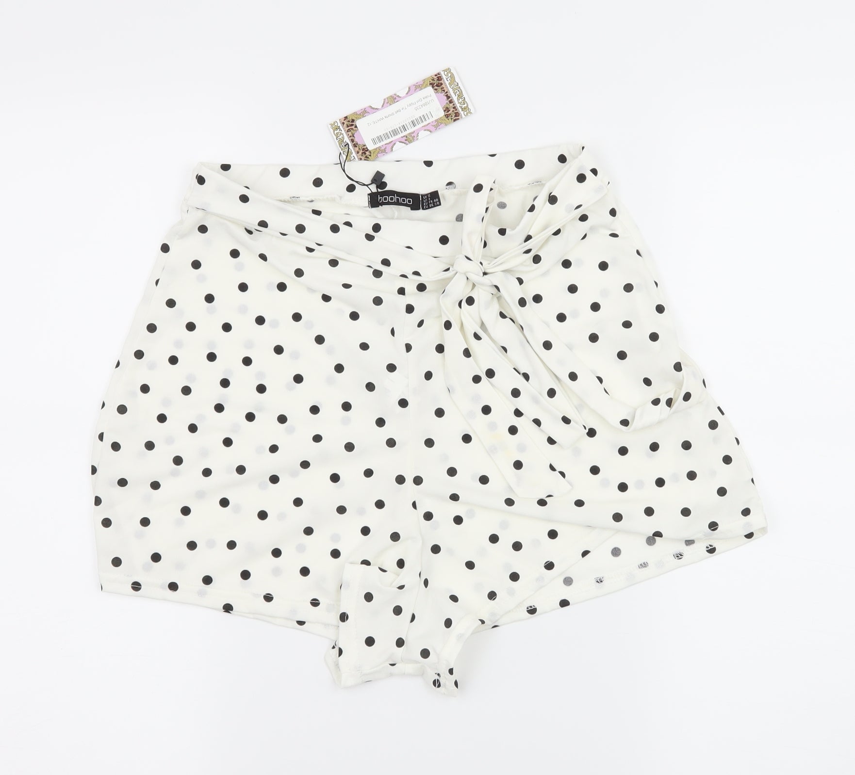 Boohoo Womens White Polka Dot Jersey Hot Pants Shorts Size 28 in