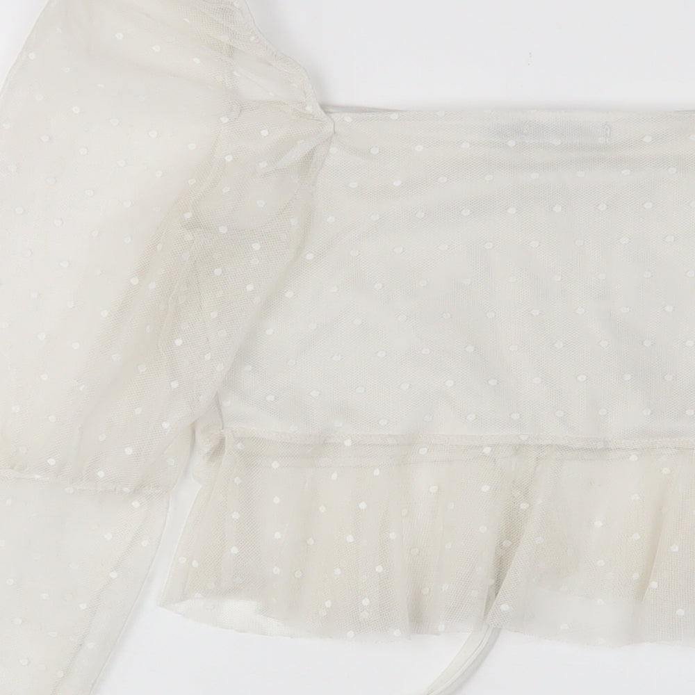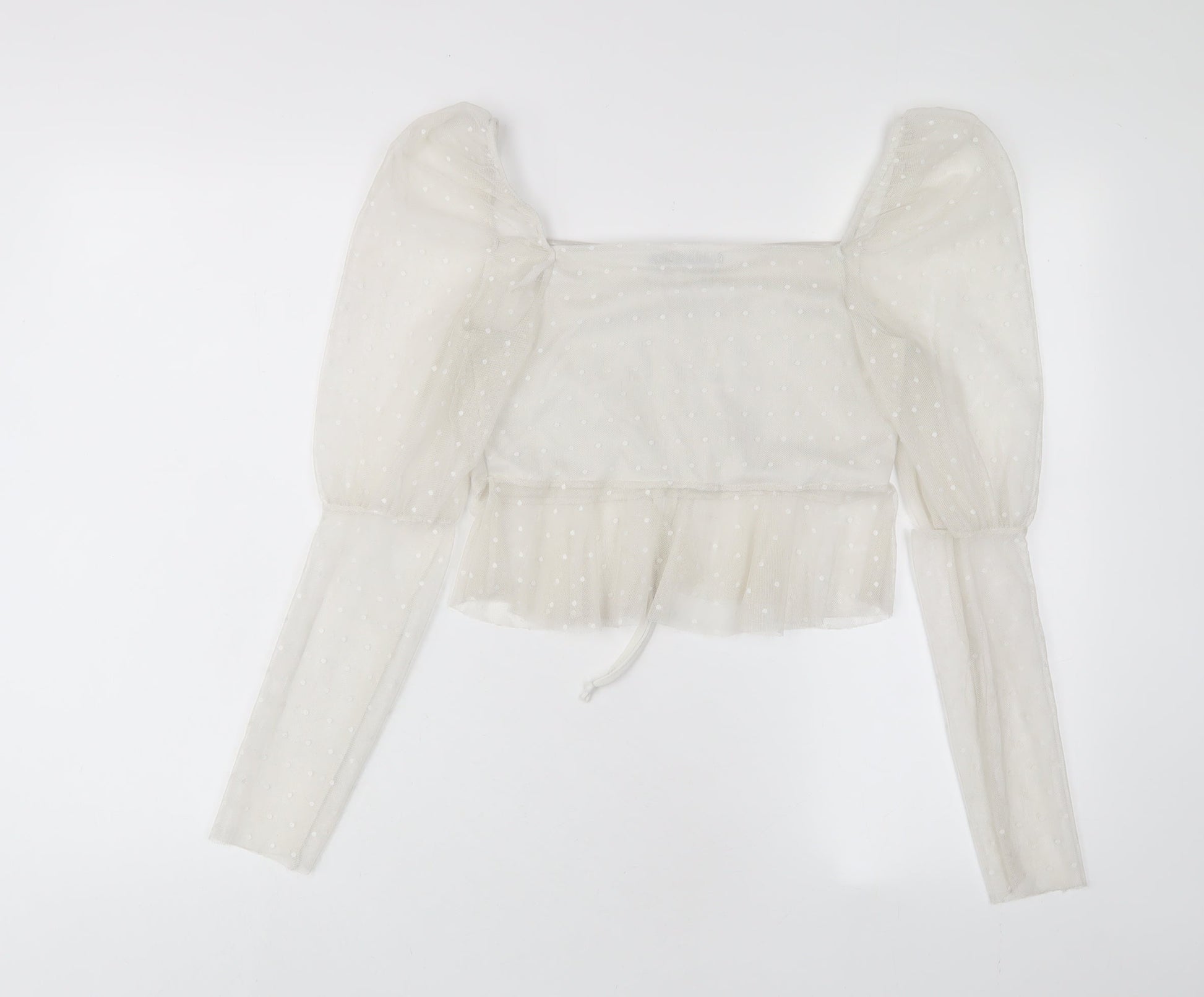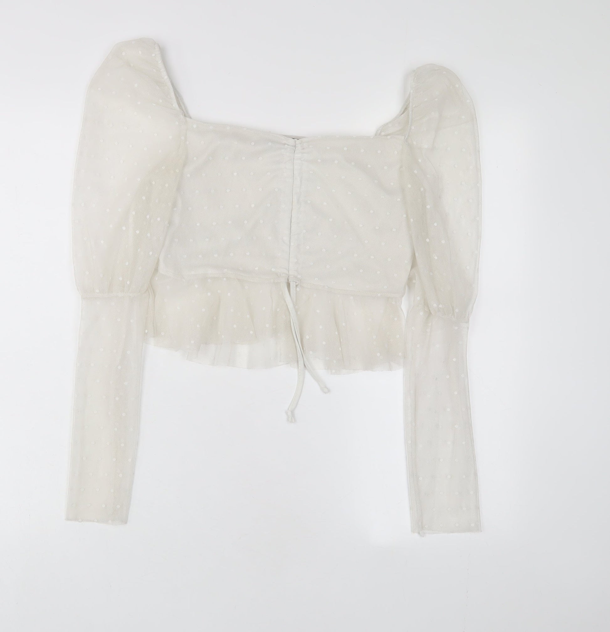 Boohoo Womens White Polka Dot Polyester Cropped Blouse Size 12 Square Neck - Embroidered