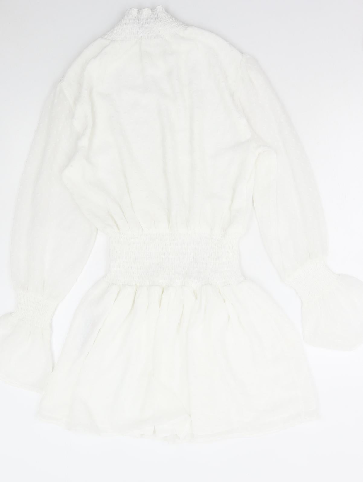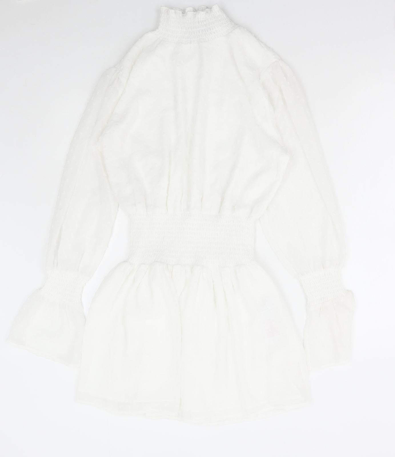 Boohoo Womens White Polka Dot Polyester Fit & Flare Size 8 High Neck Pullover