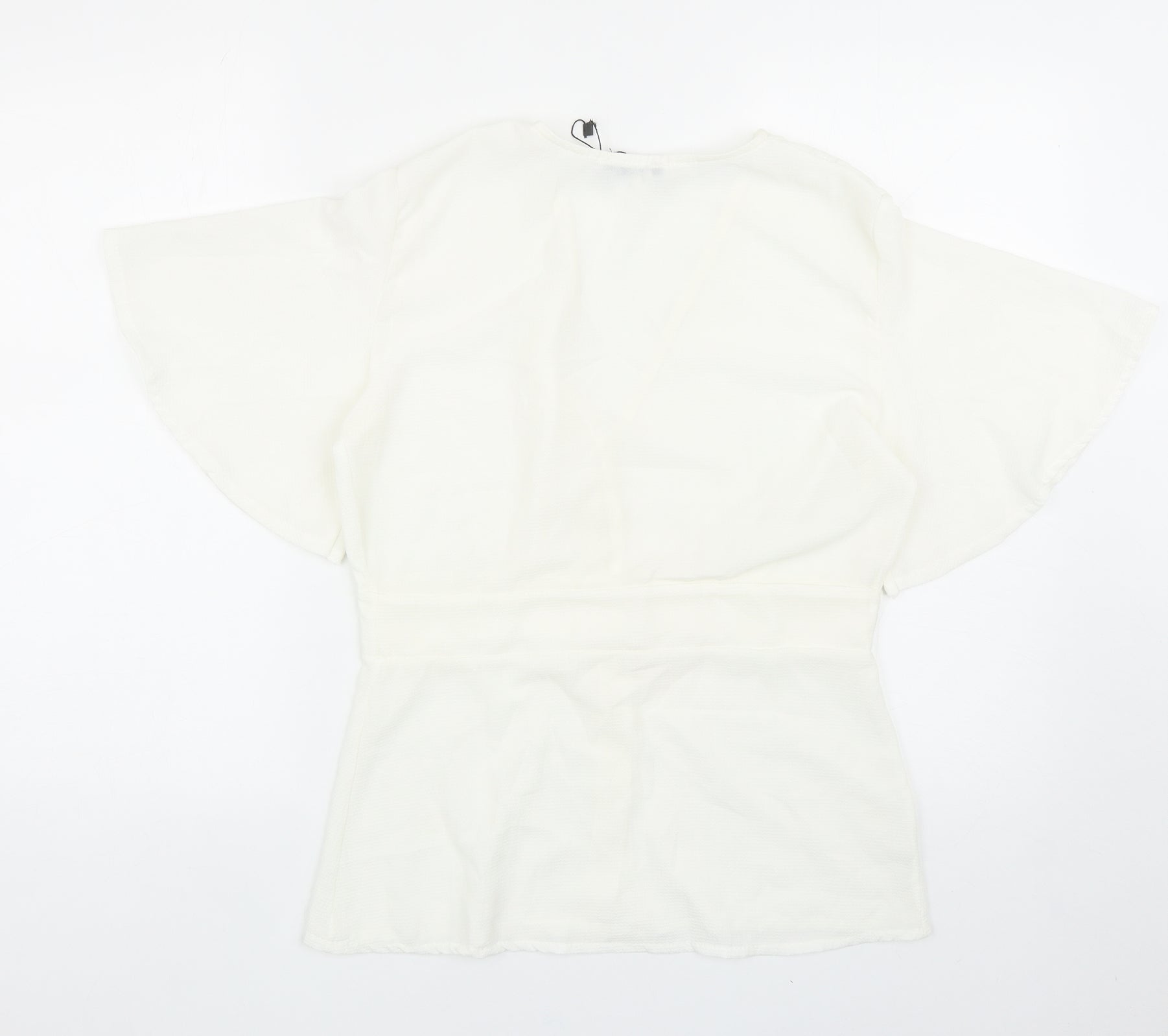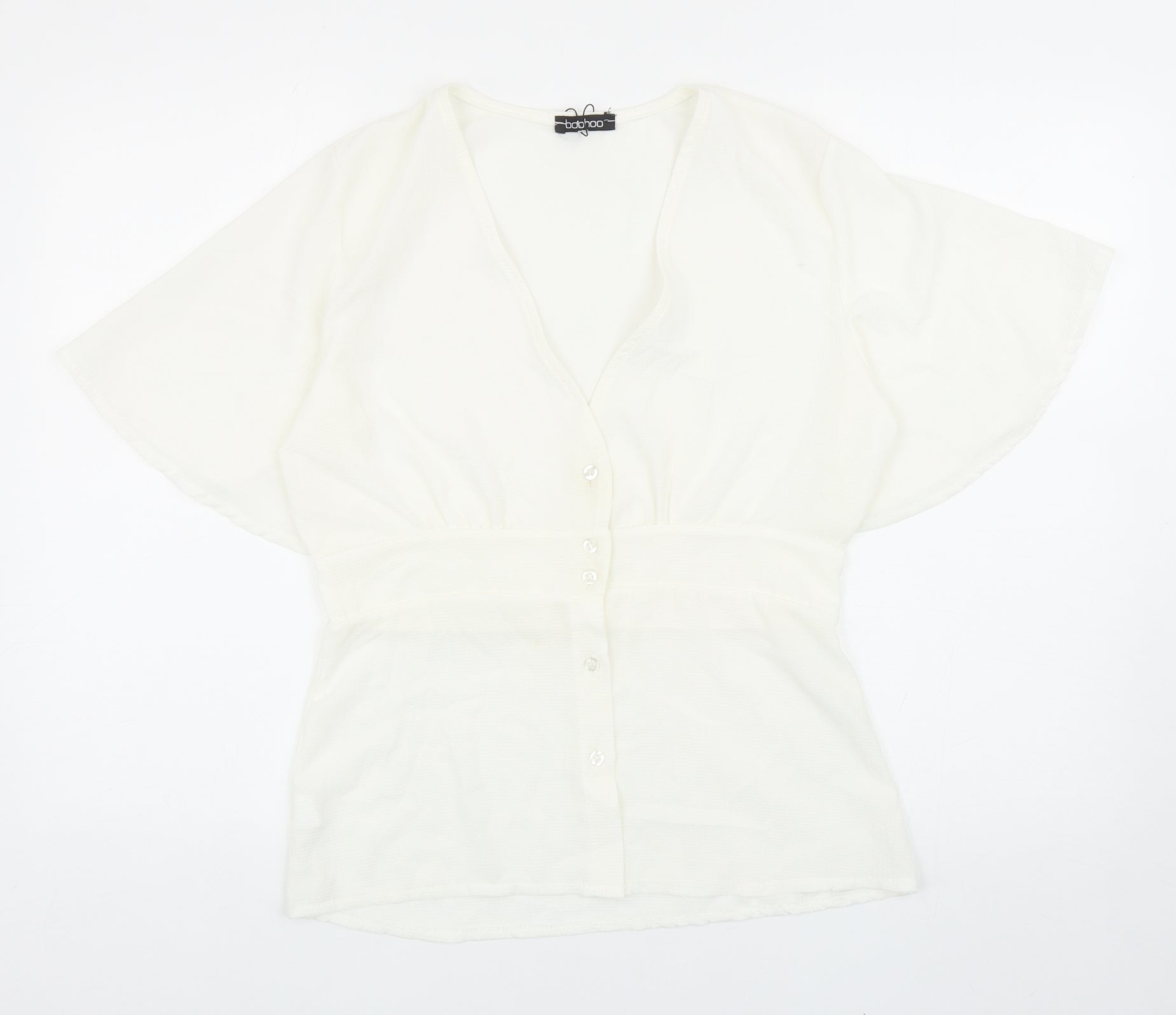 Boohoo Womens White Polyester Basic Blouse Size 14 V-Neck - Angel Sleeve