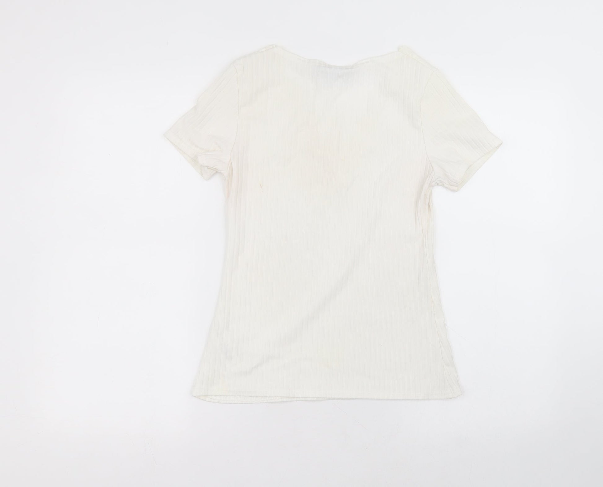 Boohoo Womens White Polyester Basic T-Shirt Size 10 Round Neck