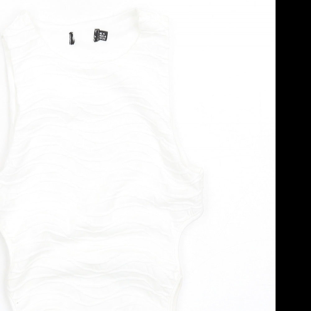 Boohoo Womens White Polyester Bodysuit One-Piece Size 4 Snap