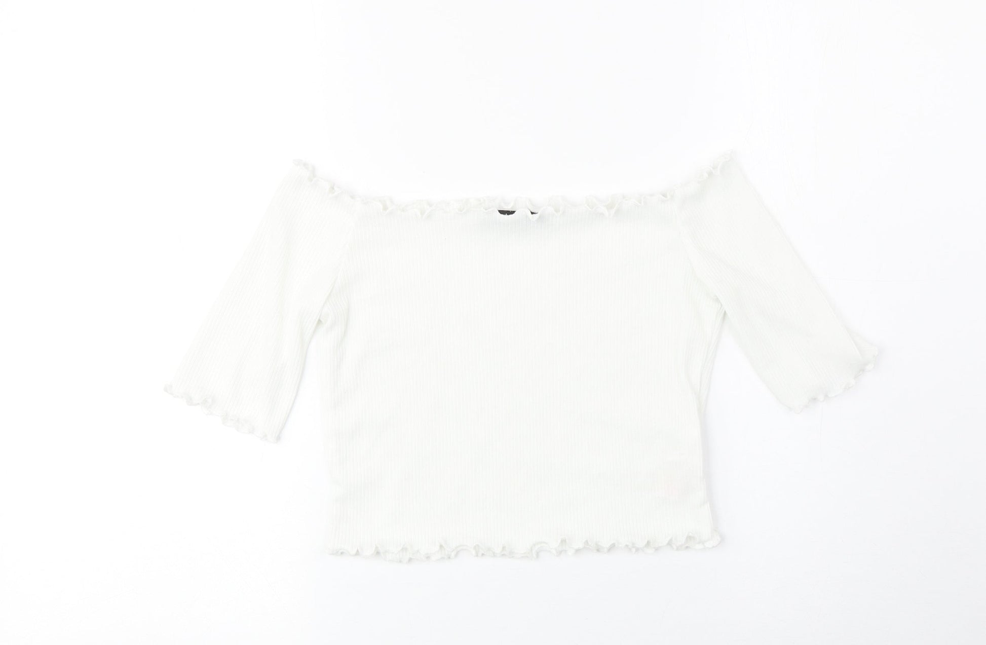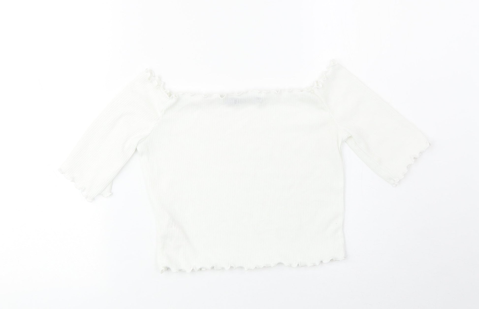 Boohoo Womens White Polyester Cropped T-Shirt Size 6 Boat Neck