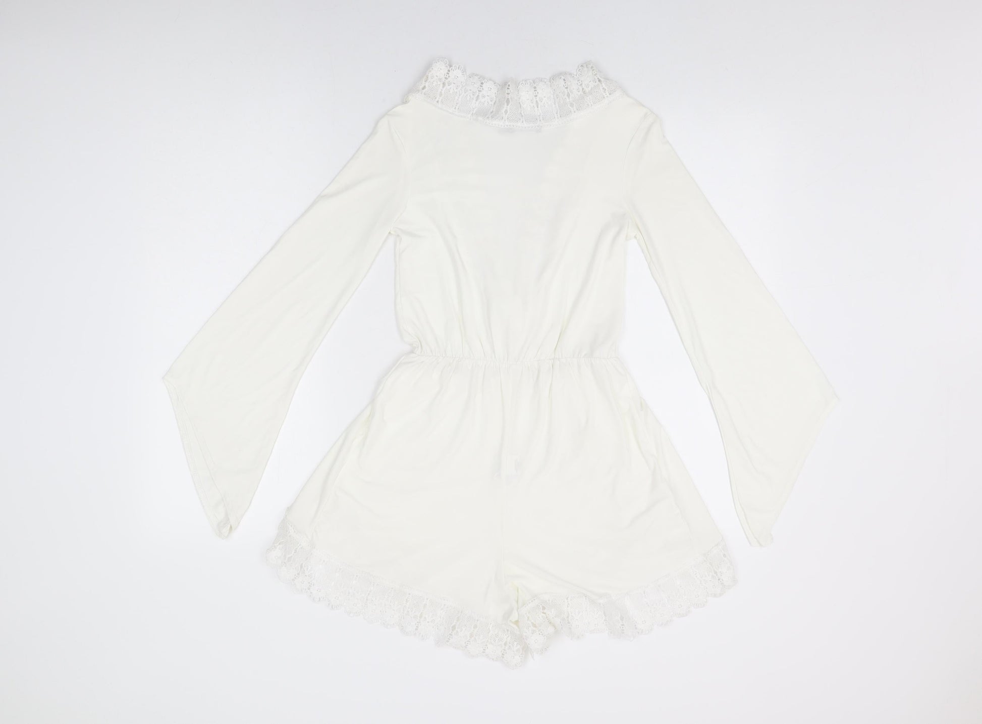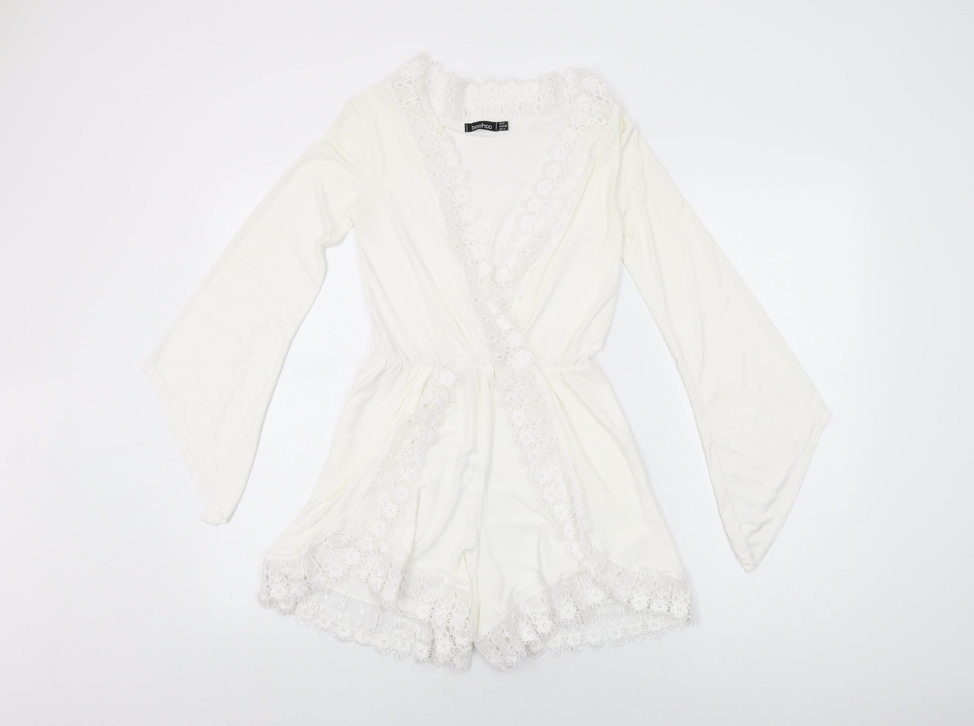 Boohoo Womens White Polyester Playsuit One-Piece Size 6 L3 in Pullover