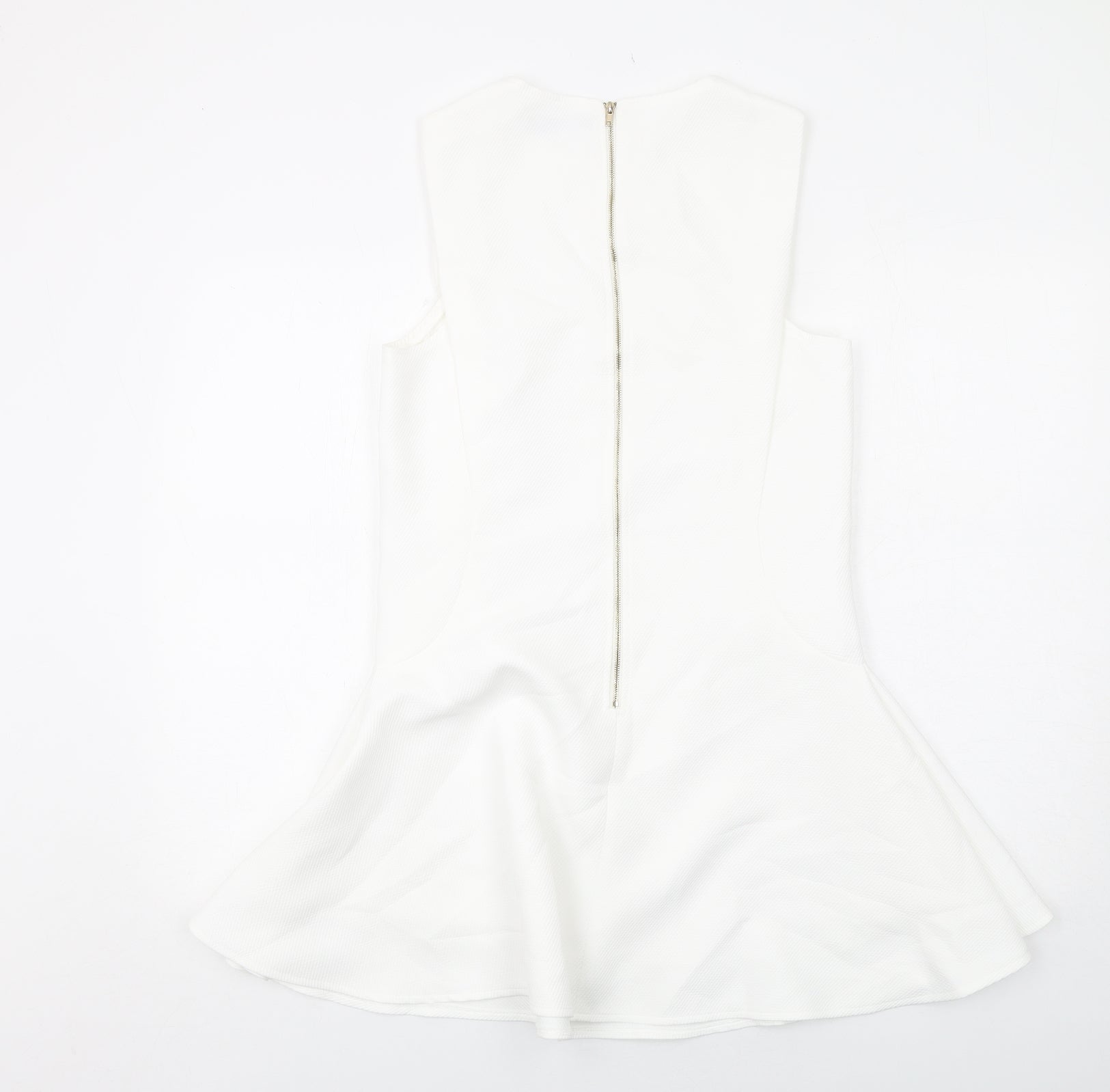 Boohoo Womens White Polyester Tank Dress Size 10 Round Neck Zip