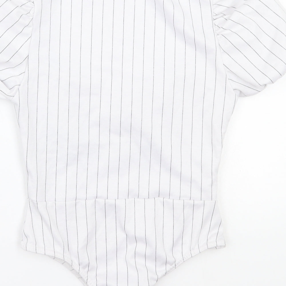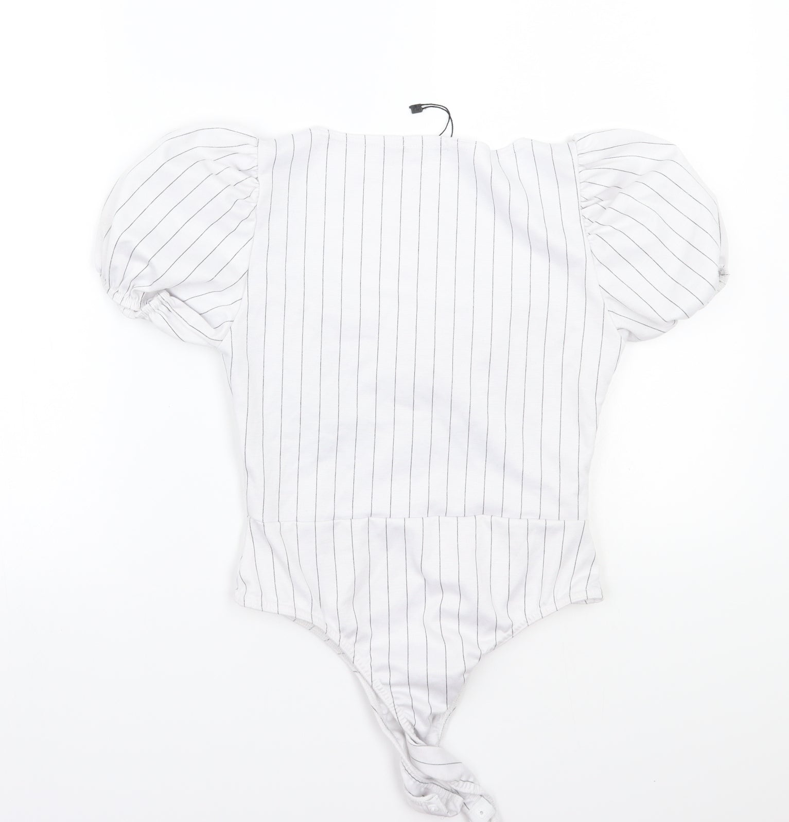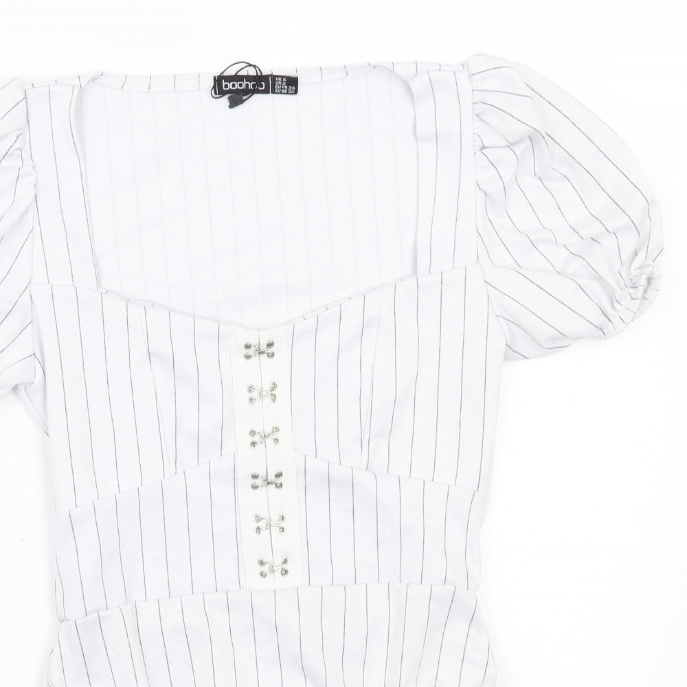 Boohoo Womens White Striped Bodysuit One-Piece Size 6
