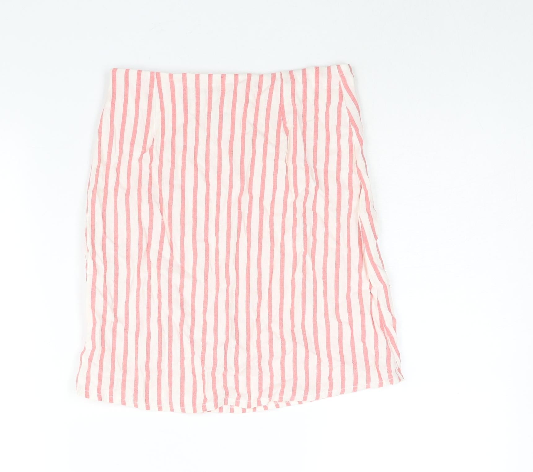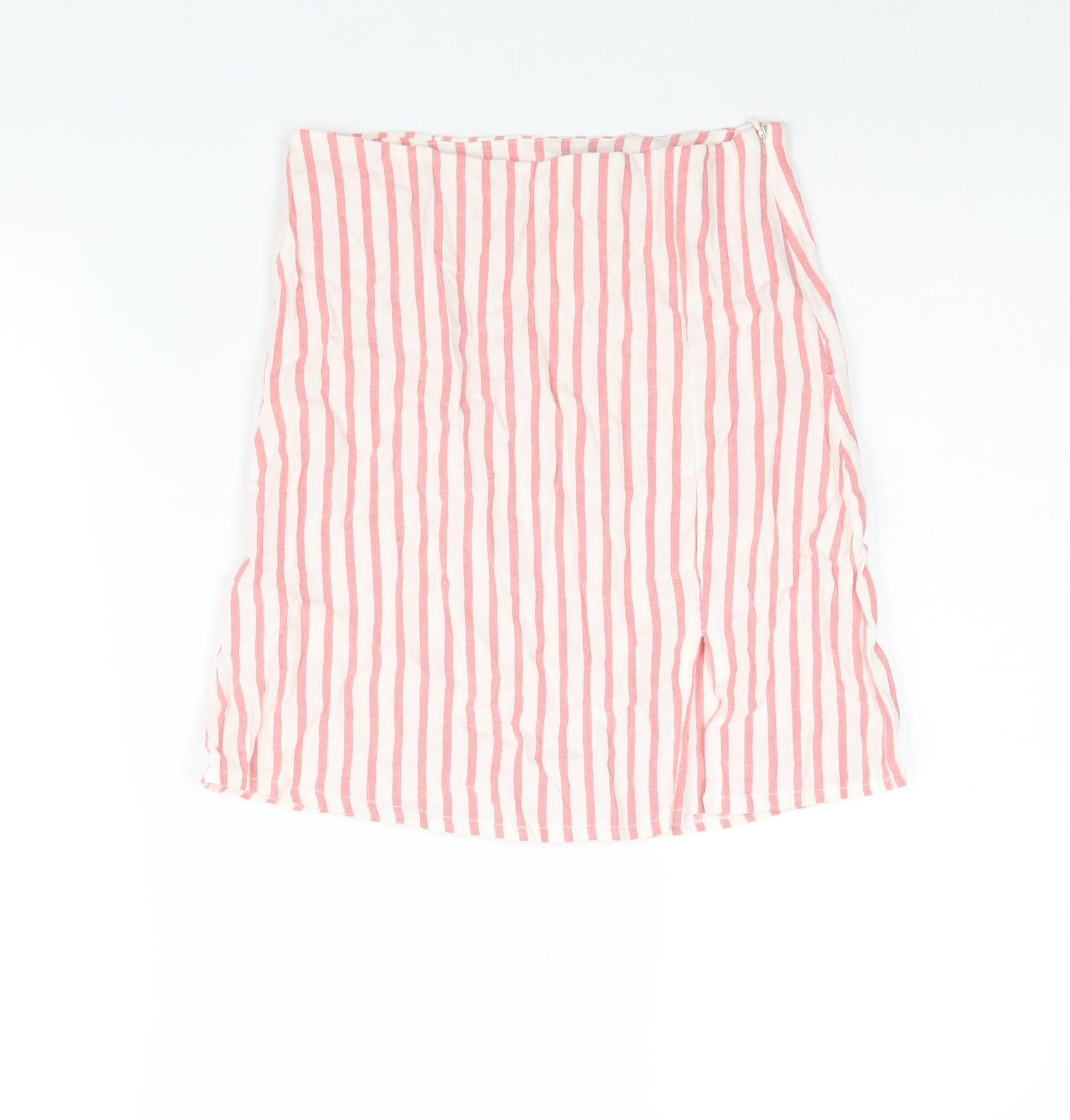 Boohoo Womens White Striped Cotton Mini Skirt Size 14 Zip - Front Slit