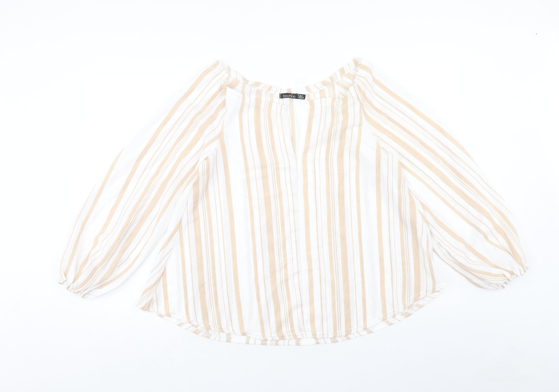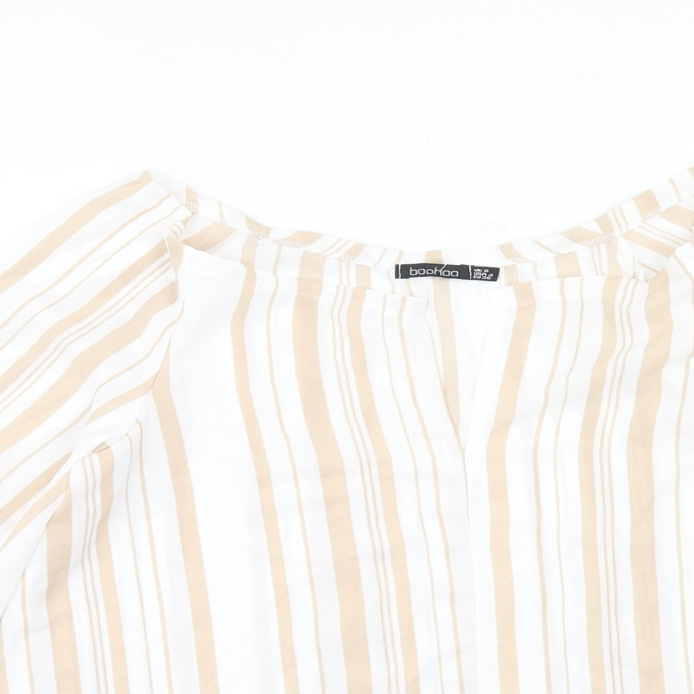 Boohoo Womens White Striped Polyester Basic Blouse Size 8 Boat Neck